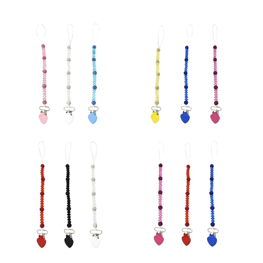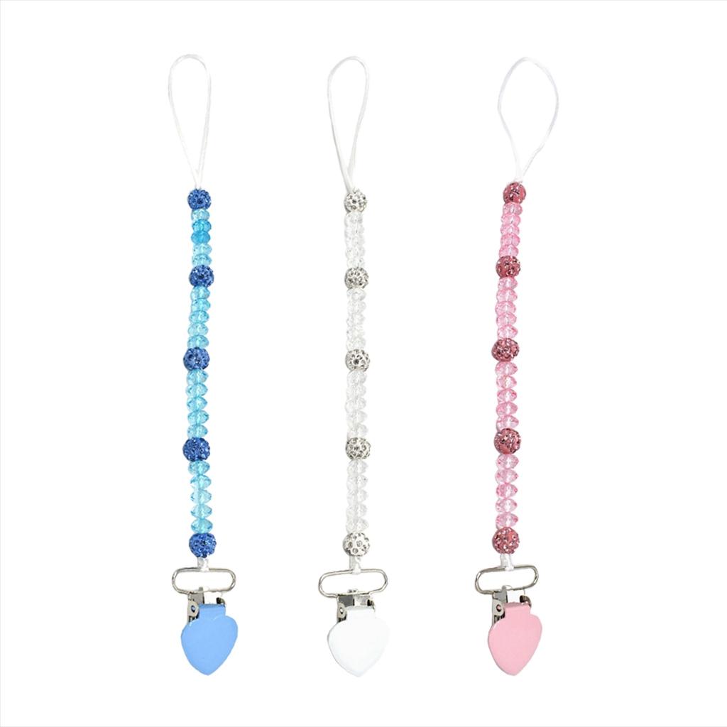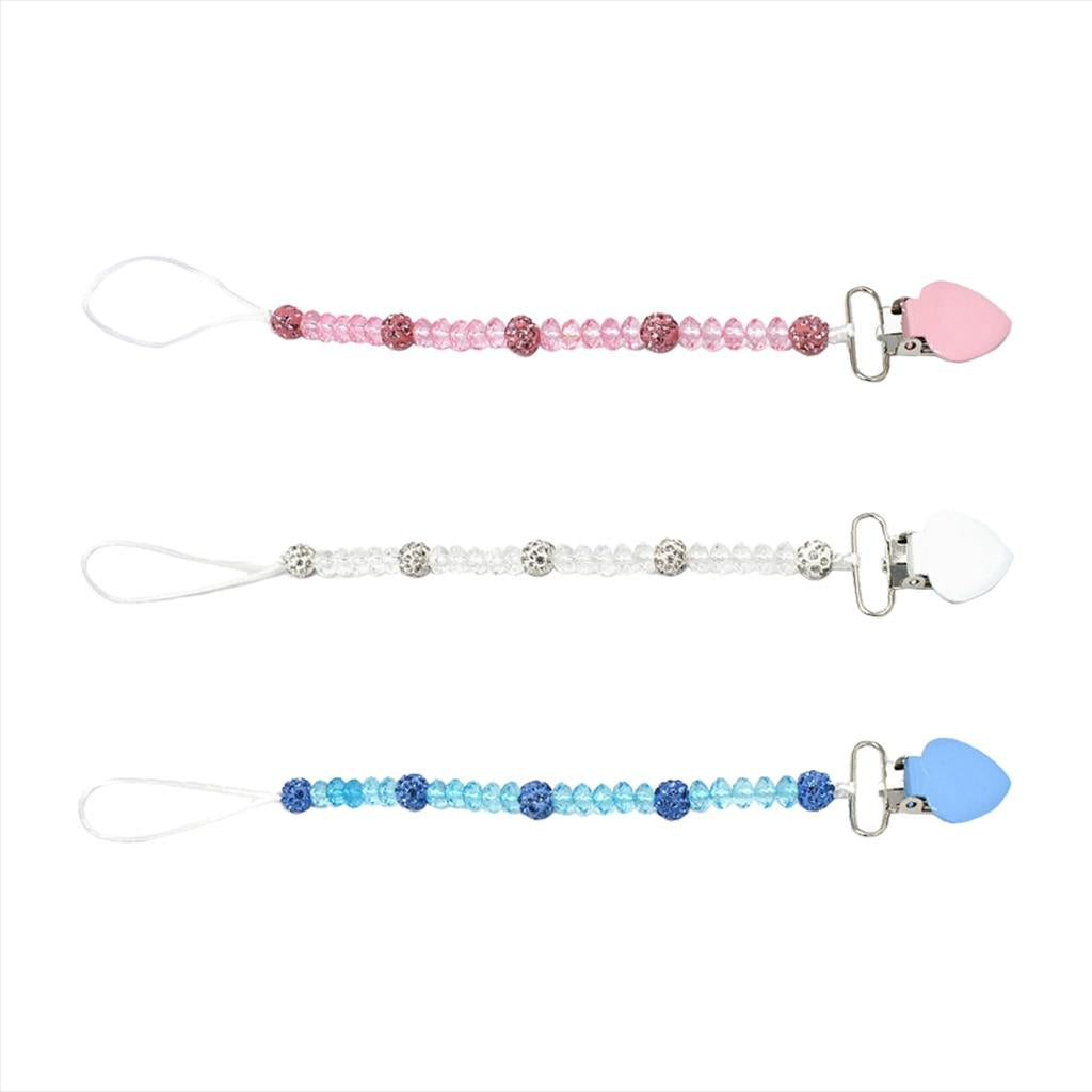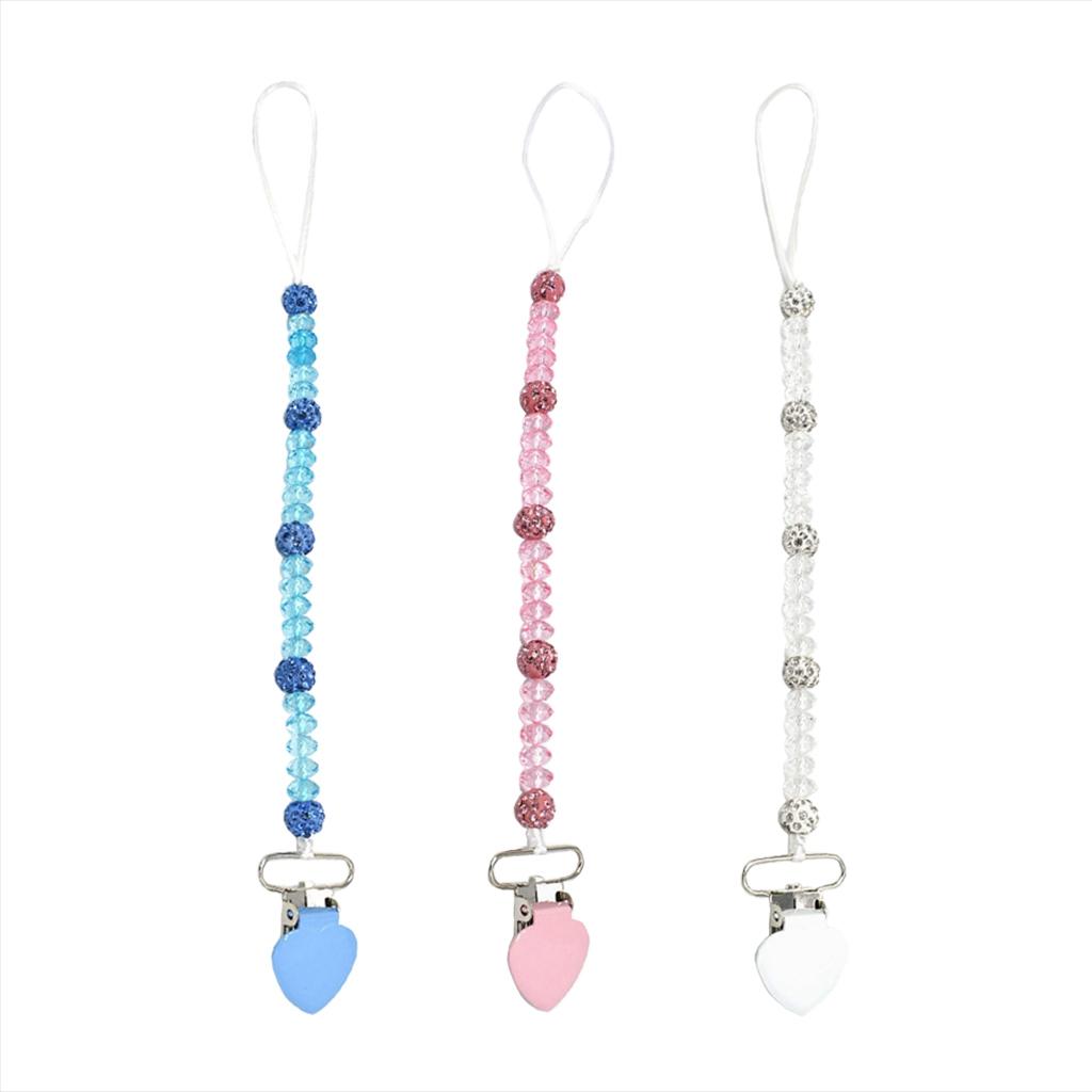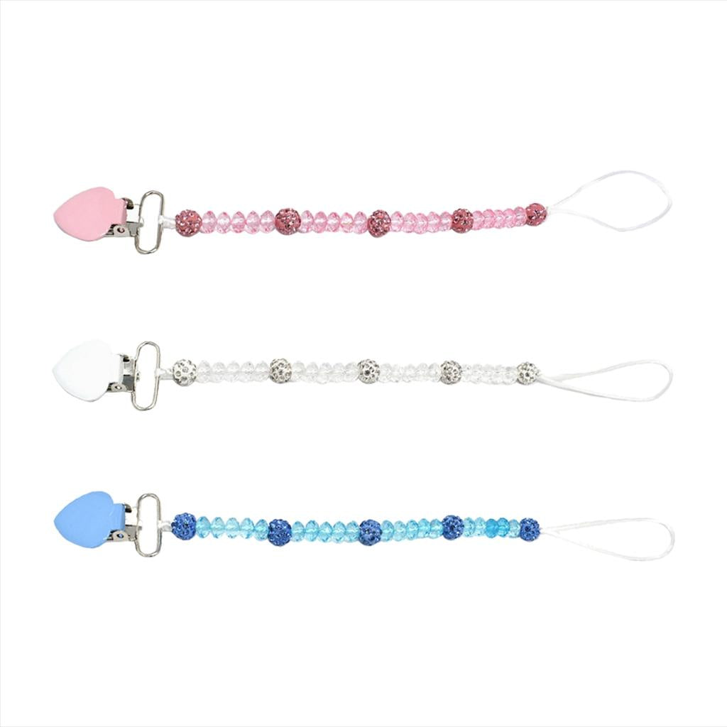 Maxbell 3 Pieces Baby Pacifier Crystal Pacifier Chain Clip Pink Blue White
