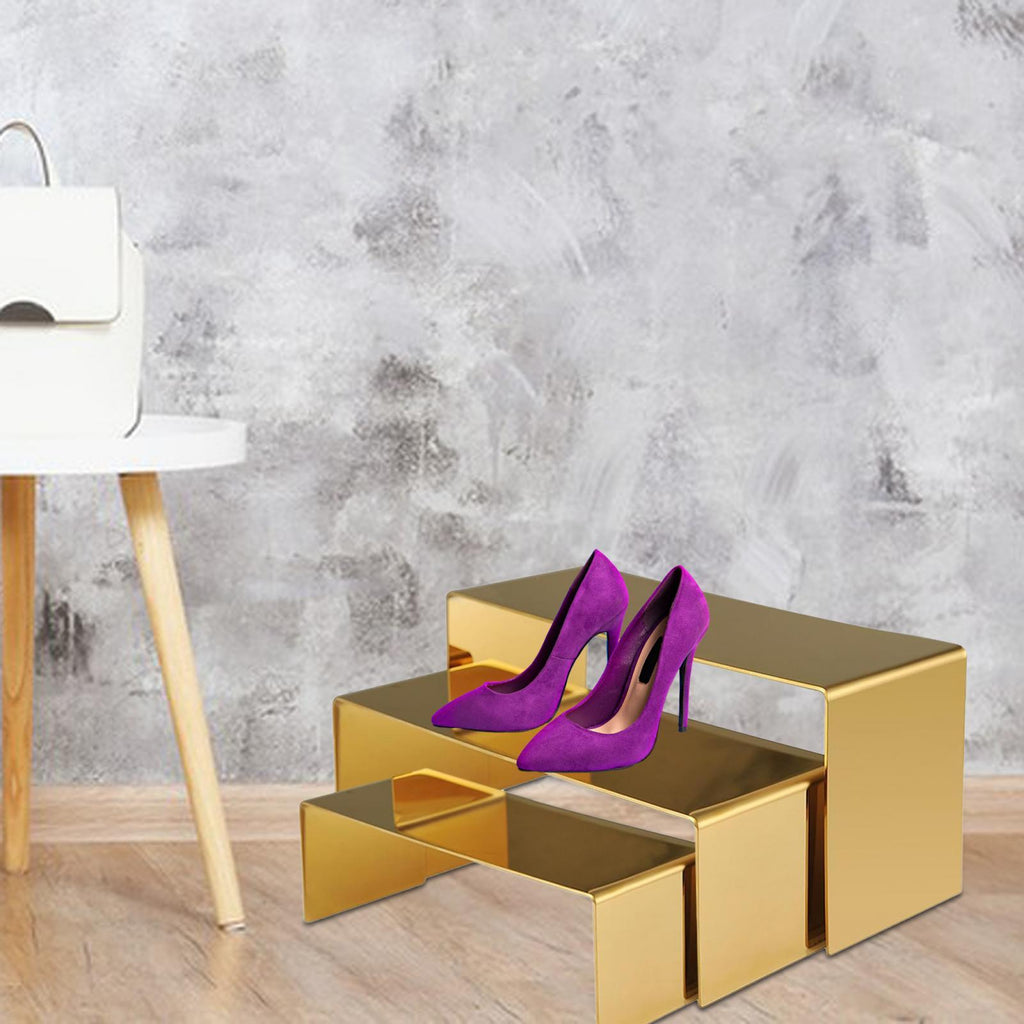 【Stainless Steel Material】Shoe Handbag Display Riser Stand is made of stainless steel, durable, sturdy, rust proof, smooth and stable