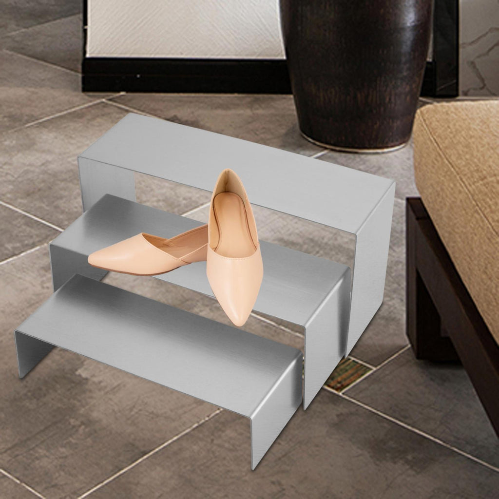 【Stainless Steel Material】Shoe Handbag Display Riser Stand is made of stainless steel, durable, sturdy, rust proof, smooth and stable