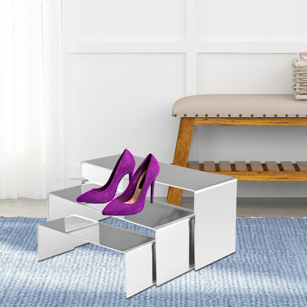 【Stainless Steel Material】Shoe Handbag Display Riser Stand is made of stainless steel, durable, sturdy, rust proof, smooth and stable