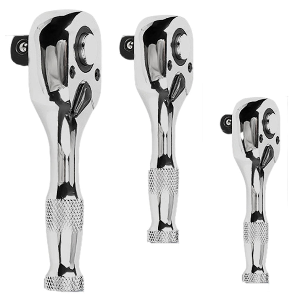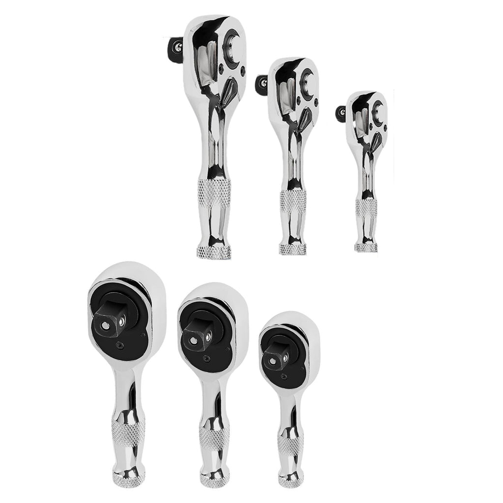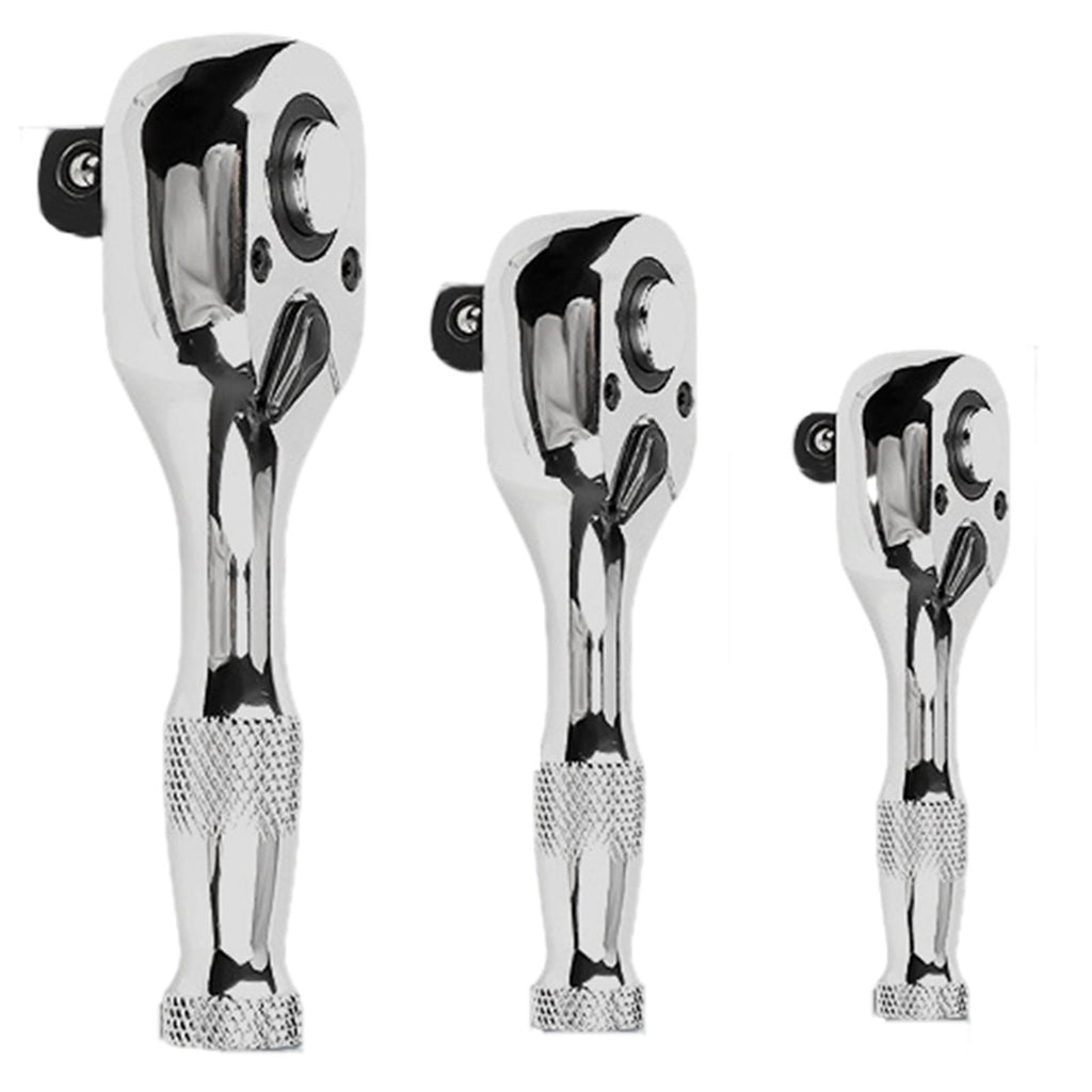 Maxbell 3 Pieces Stubby Drive Ratchet Set Mini Steel Ergonomic Handle Ratchet Wrench Print A