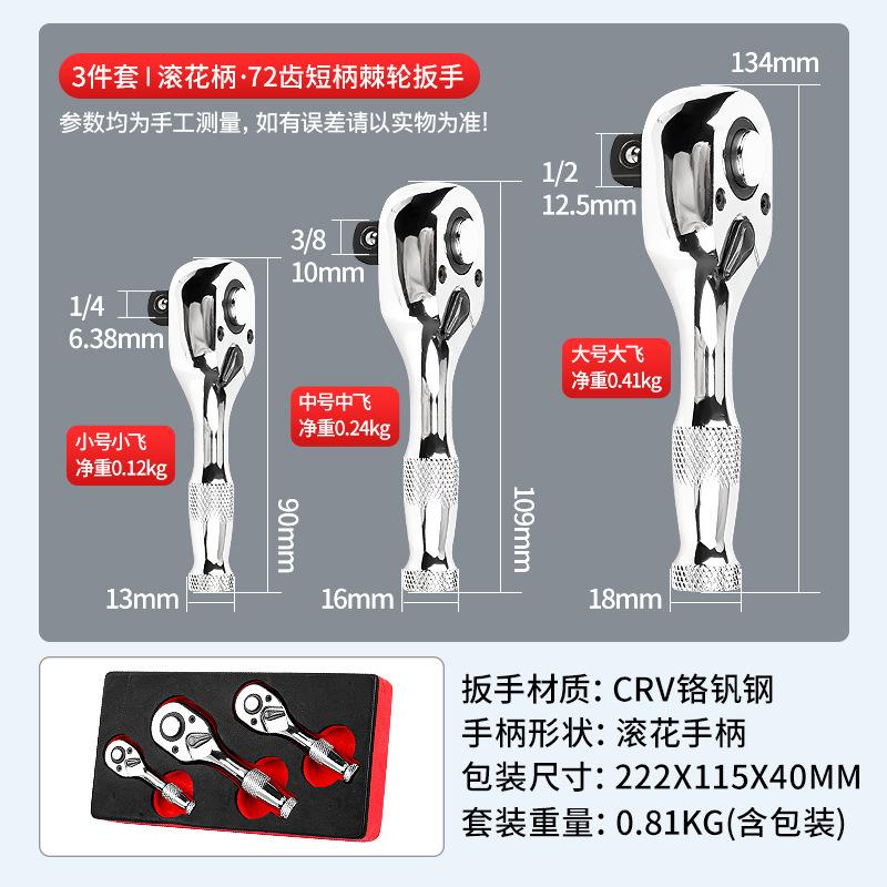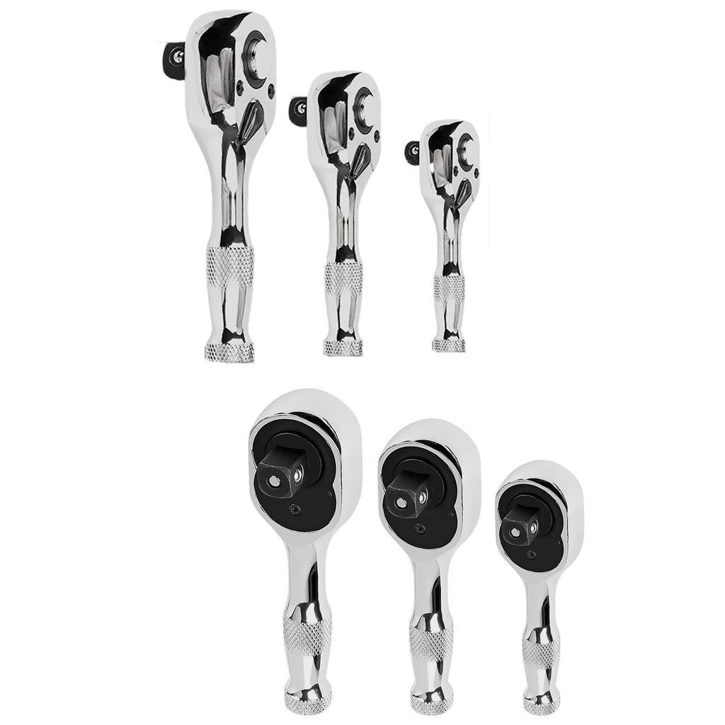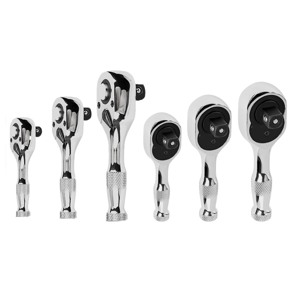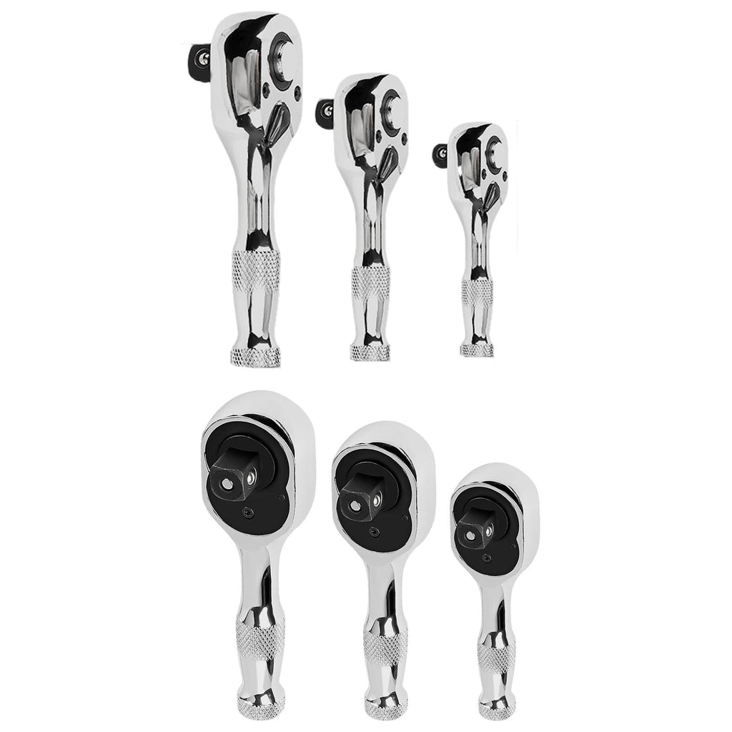 Maxbell 3 Pieces Stubby Drive Ratchet Set Mini Steel Ergonomic Handle Ratchet Wrench Print A