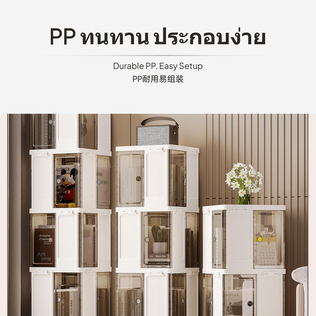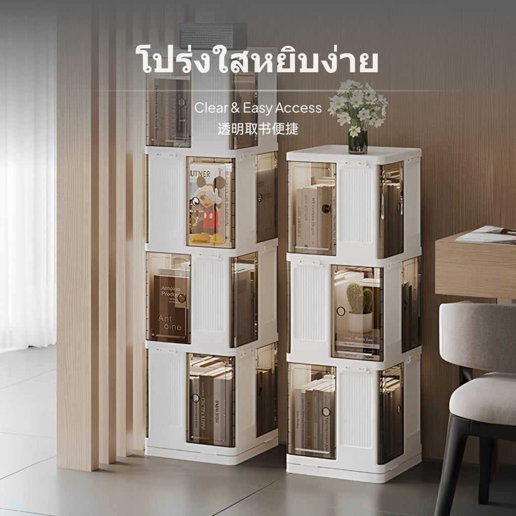 [easy Book retrieval] The 360-degree rotating book organizer offers effortless retrieval to your books and magazines, perfect for children’ picture books and general home organization.[Clear attractive closure Doors] Each tier features transparent attractive closure doors, ensuring easy visibility of contents while protecting books from particles and moisture.[Multi-Tier adaptable Design] Customizable stackable framework available in 2, 3, or 4-tier choices, holding up to 90, 140, or 200 books respectively, maximizing storage in restricted spaces.[secure and steady Placement] Freestanding design with anti-slip pads provides dependable support, making it a suitable storage solution for living rooms, bedrooms, children's rooms, and study areas.[Modern Minimalist design] Sleek ivory frame with stylish semi-transparent doors blends easily with contemporary home décor, enhancing both storage and visual appeal.Specification: