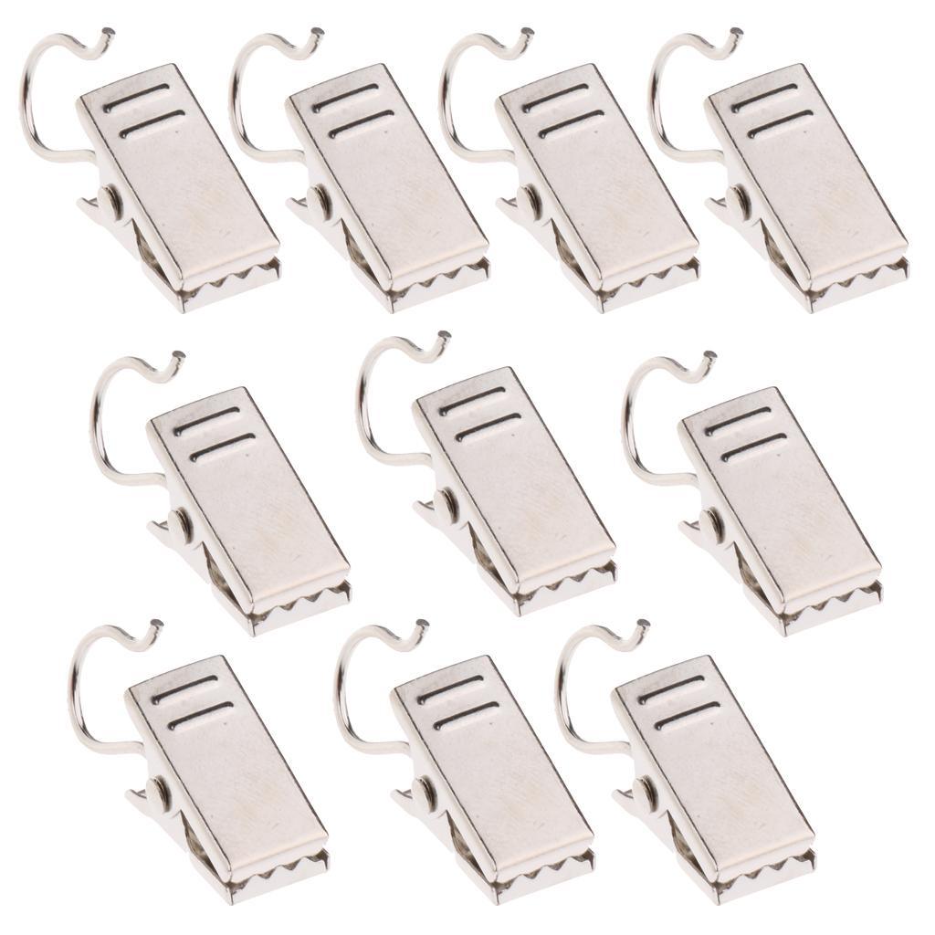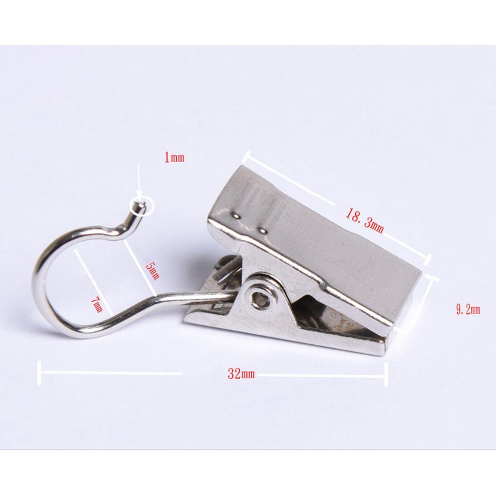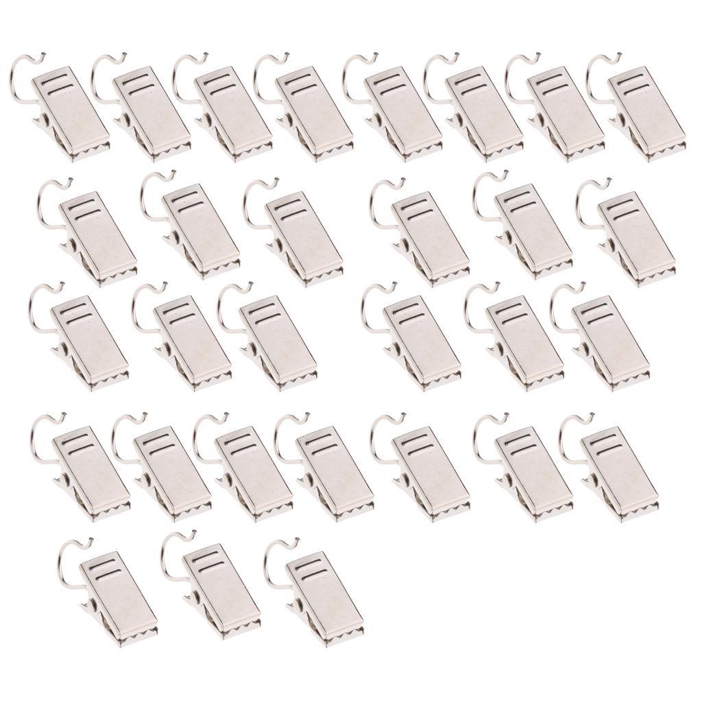 Maxbell 30 x Shower Curtain Clips with Hook Gliding Hanging Clamp Hanger Hook, Clothes Peg 32mm Silver