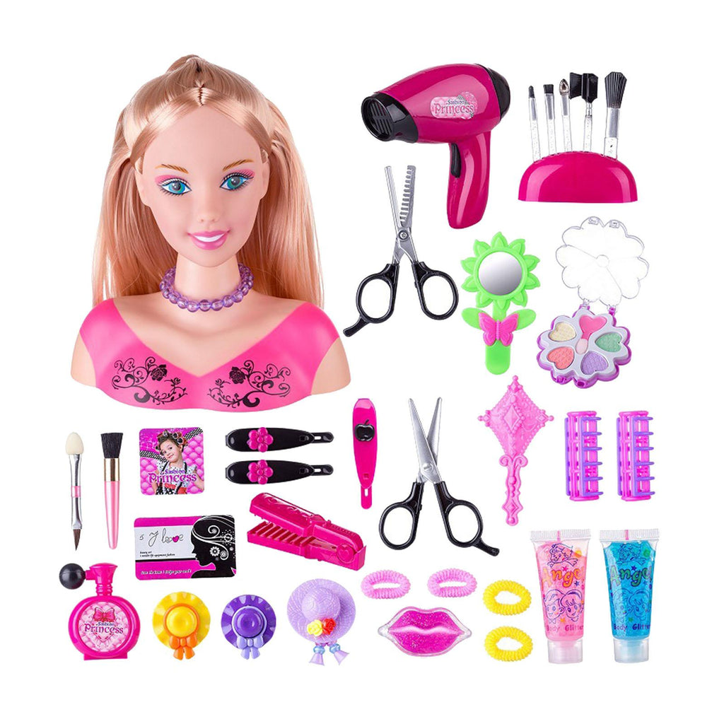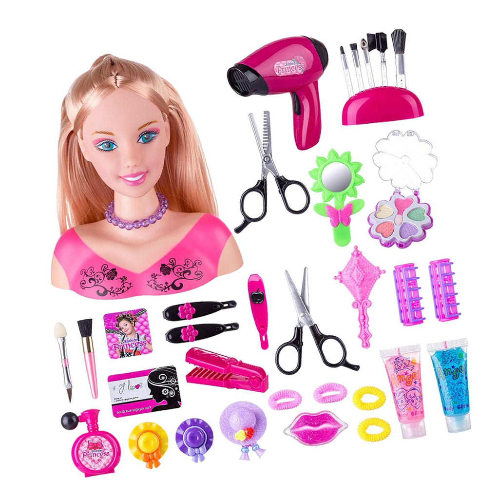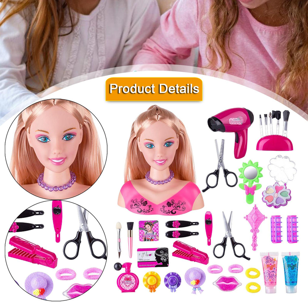 - 【COMPLETE 35 PIECE STYLING HEAD SET】: Unleash your child's inner stylist with this all in 1 kit! This set features a beautiful doll head with a highly realistic face, plus a treasure trove of multi accessories including a makeup palette, brushes, hair clips, ties, a comb, and more. for hours of pretend play is right in the box