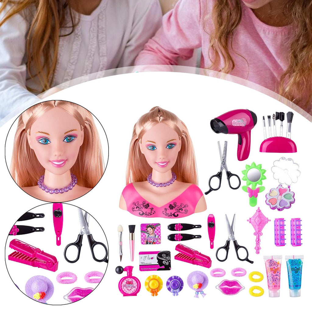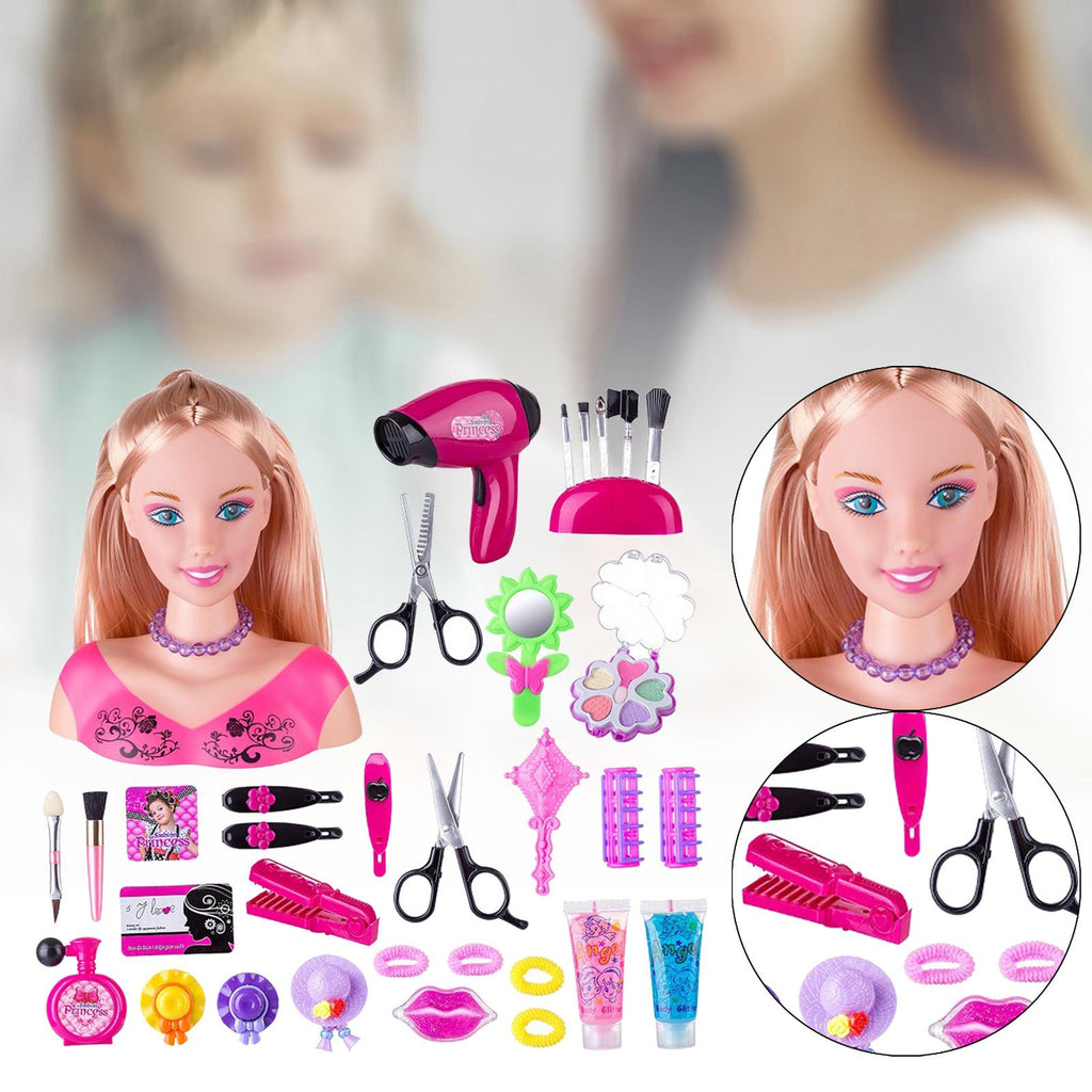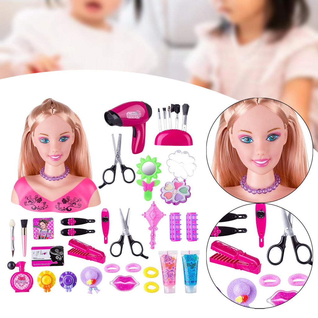 35x Doll Head Hair Styling Set with Hairpins Accessories Kids Makeup Playset Style B