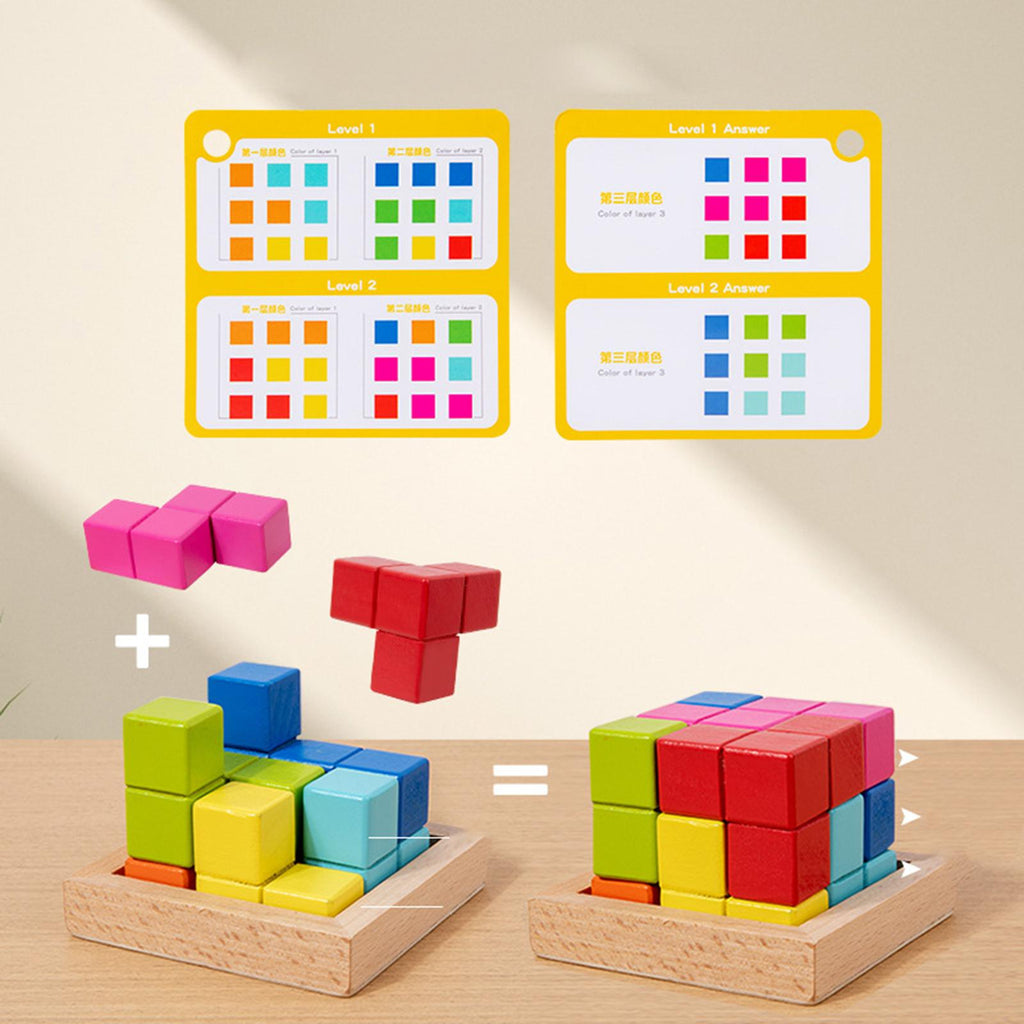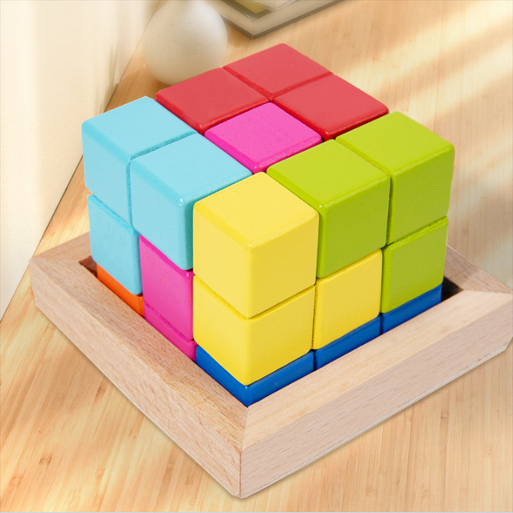 Maxbell 3D Cube Puzzle Preschool Learning Toy Wooden Block Puzzle Children Kid Adults