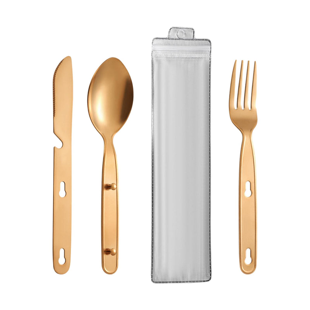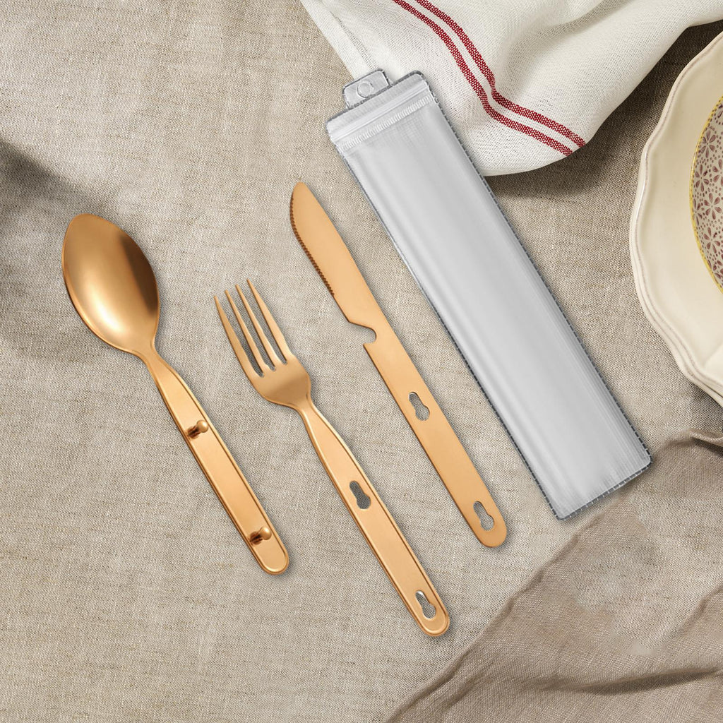 Maxbell 3Pcs Camping Utensils Flatware Spoon Fork Knife for Survival BBQ Backpacking Rose Golden