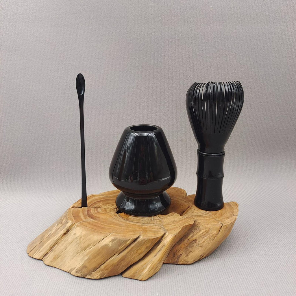 Maxbell 3Pcs Japanese Matcha Whisk Set Tea Bowl for Tea Ceremony Dining Room Bedroom black