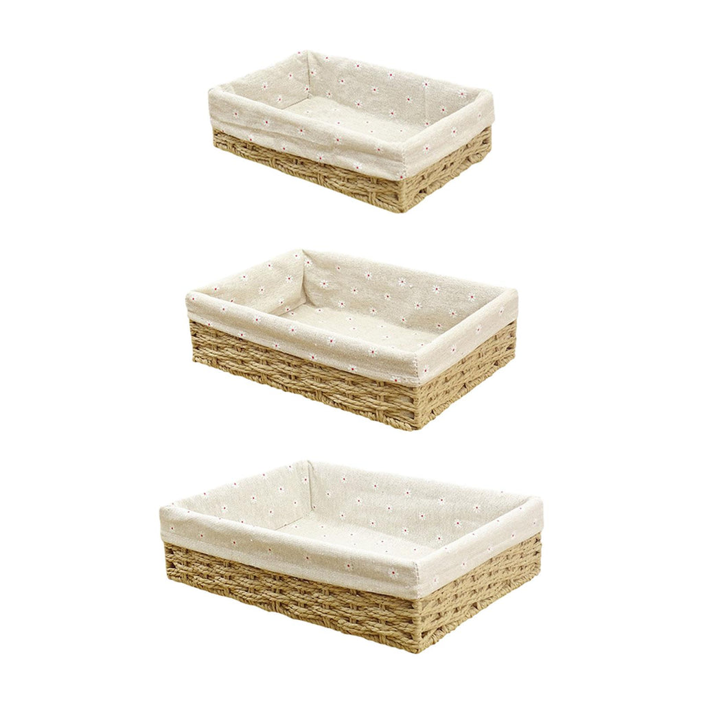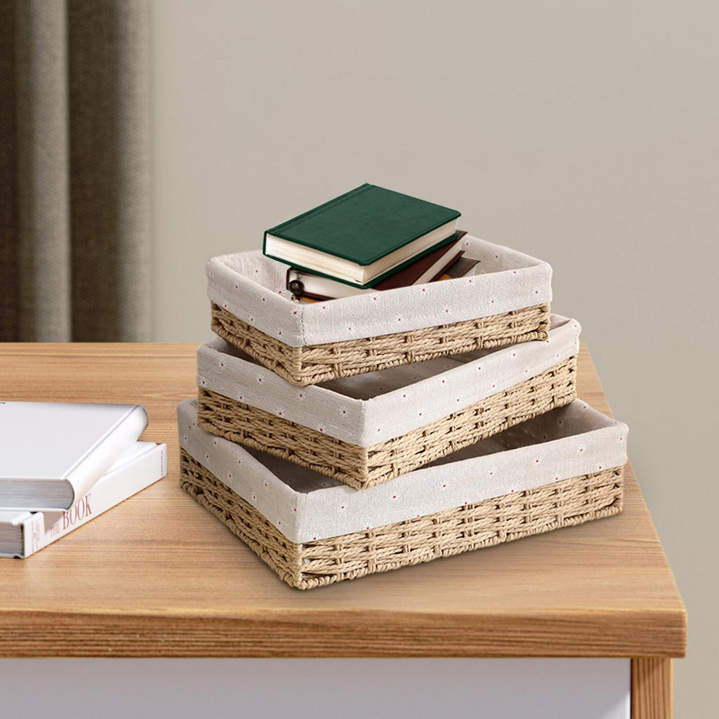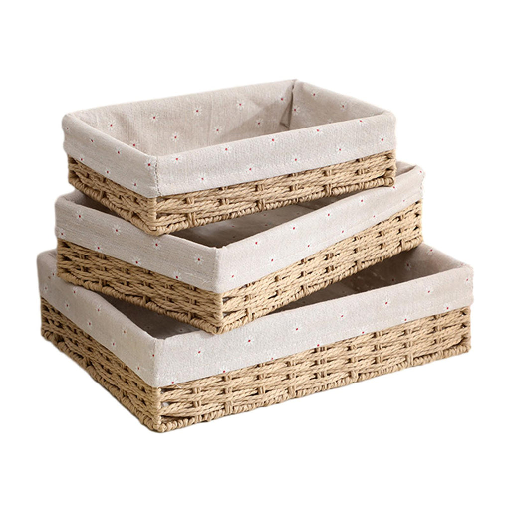Maxbell 3Pcs Woven Baskets Rectangular Organizer Bins for Cosmetics Appetizer Snacks