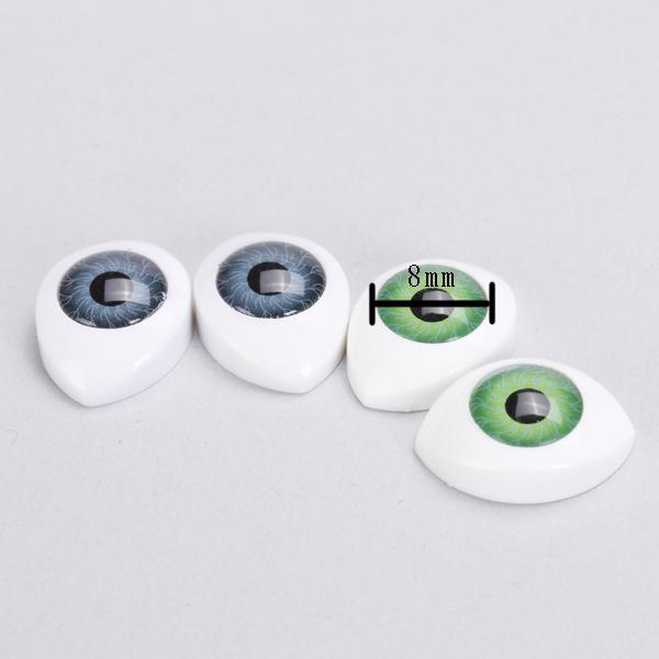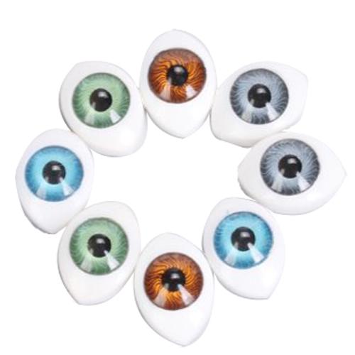 Four pairs of plastic eyes for dolls or masks. Come in four colors as grey, brown, blue and green, with each color a pair. These plastic eyes are of fine workmanship, and are very life-like. The doll eyes are of oval shape, and are flat and hollow in the back. They are great DIY accessory.