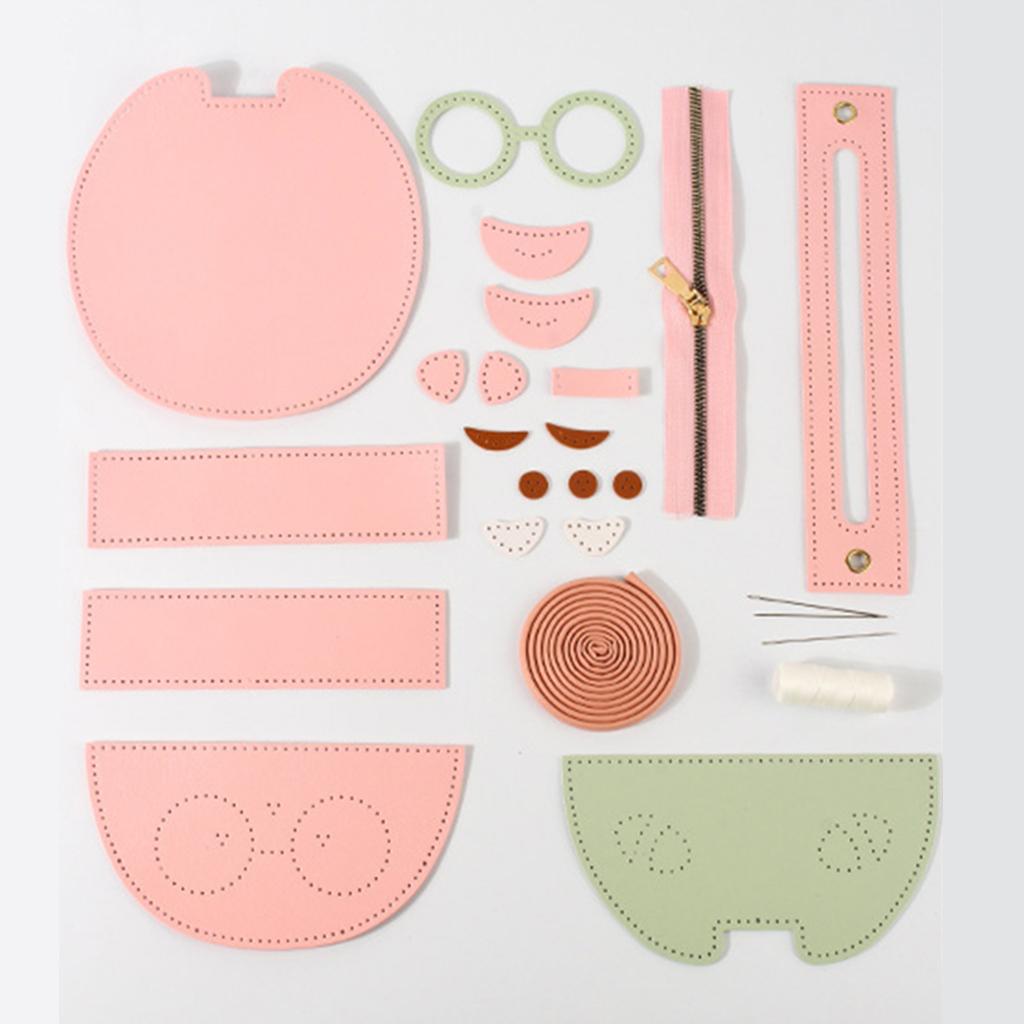 Maxbell 3xDIY Leather Crossbody Bag Kit Easy for Kids Leather Sewing Kits Pink