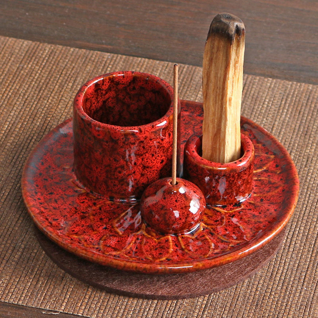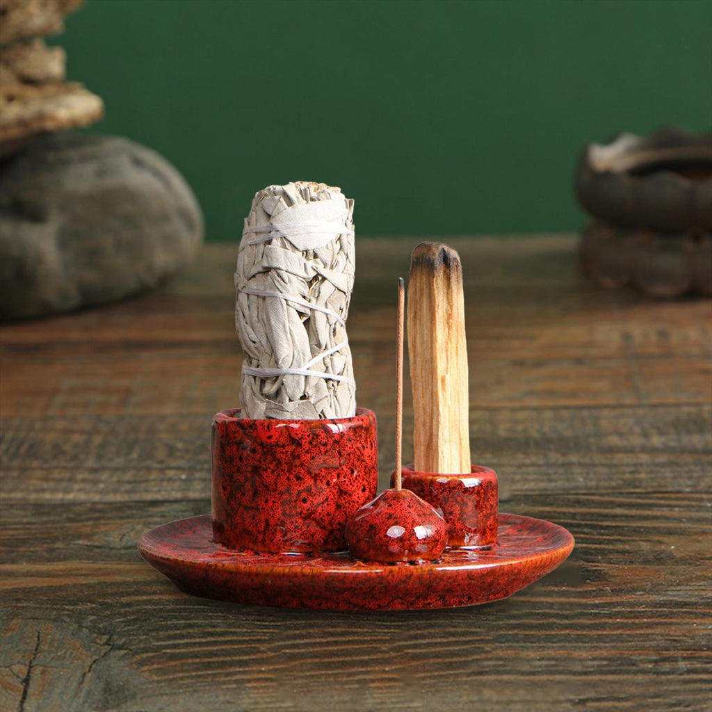 【Multifunctional】: 4 in 1 Table censer can be used as an incense holder, palo santo burner, sage burner, candle holder, burning incense sticks, Palo Santo, and Sage.