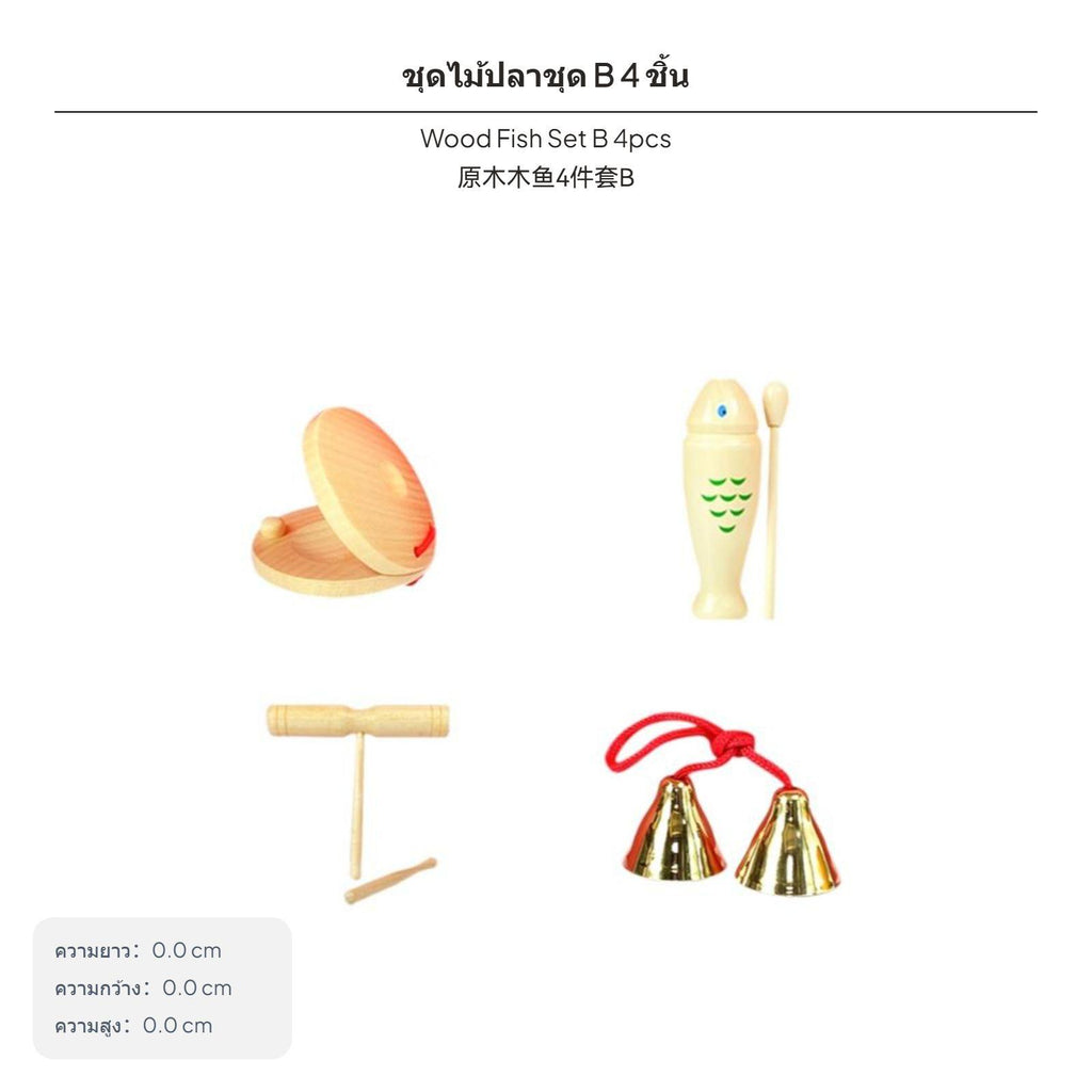 4-Piece Orff Wooden Percussion Set, wooden rhythm block, Mallet, Kids Music Toy Fish 4pcs Set B