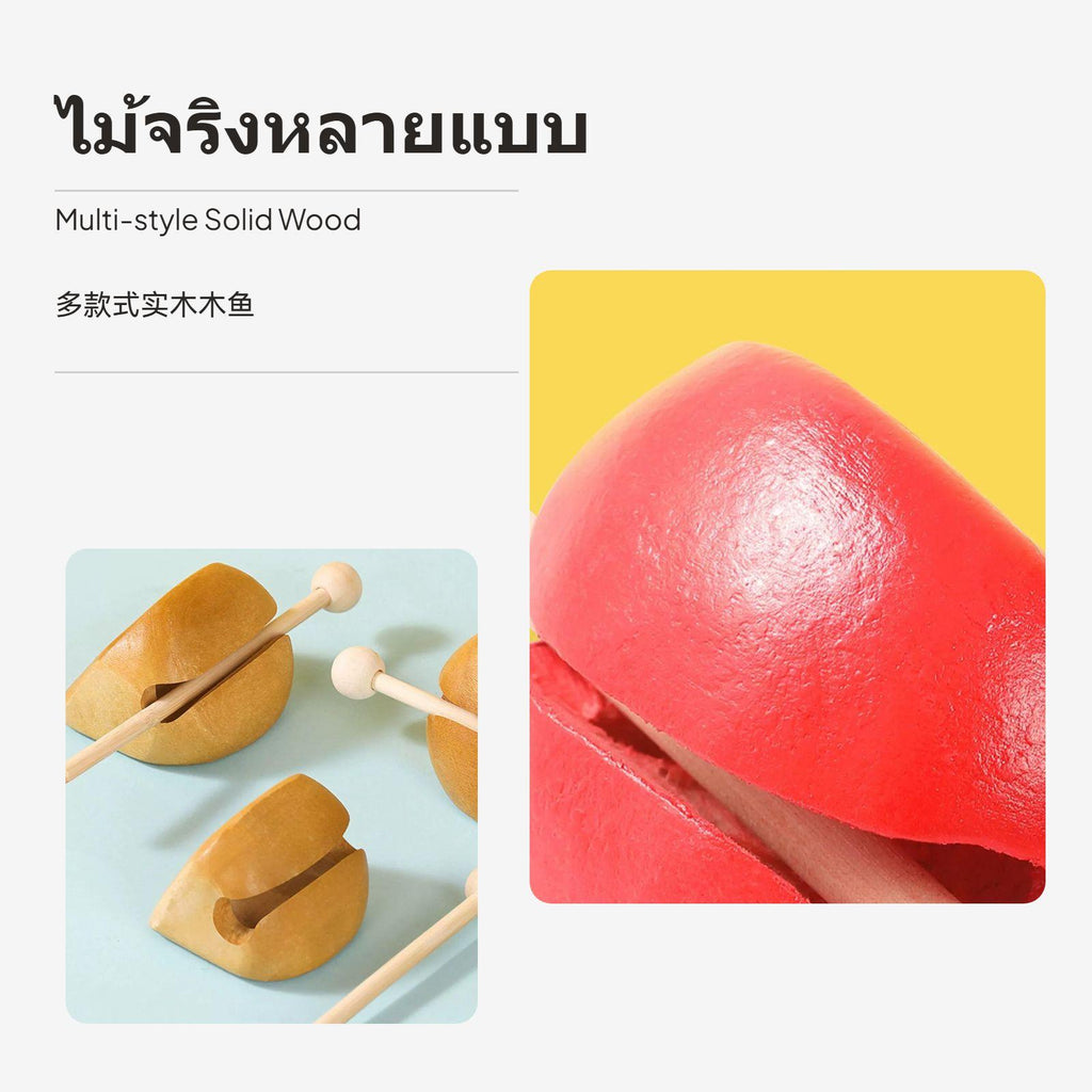 4-Piece Orff Wooden Percussion Set, wooden rhythm block, Mallet, Kids Music Toy Natural Wooden Fish