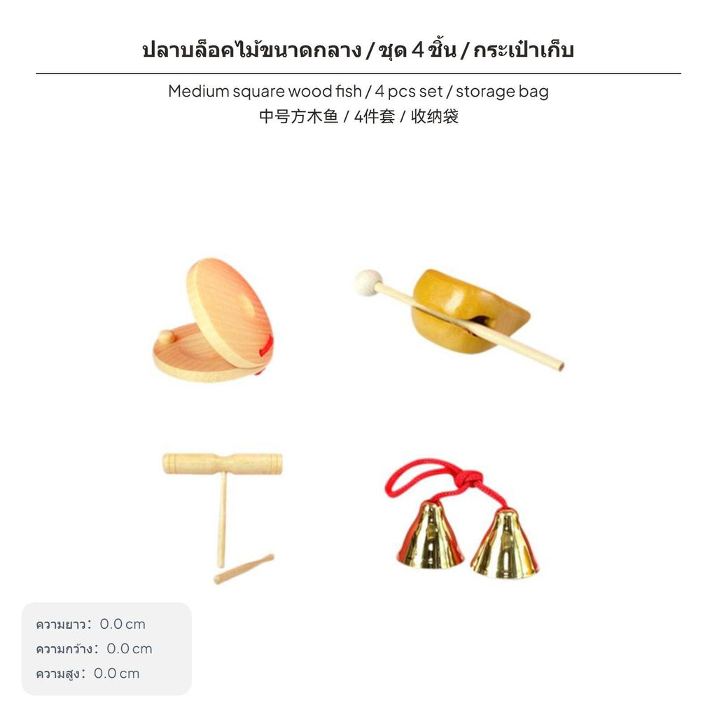 4-Piece Orff Wooden Percussion Set, wooden rhythm block, Mallet, Kids Music Toy Square Fish Set M