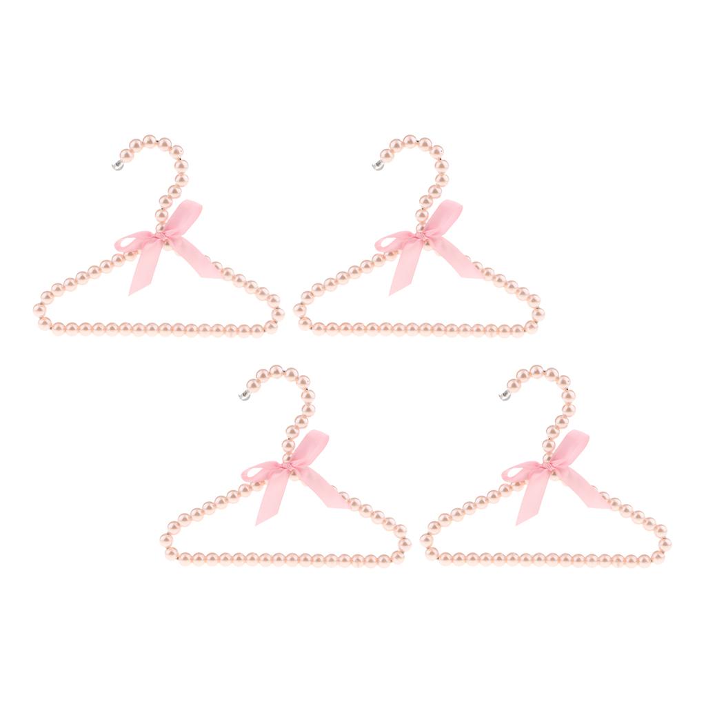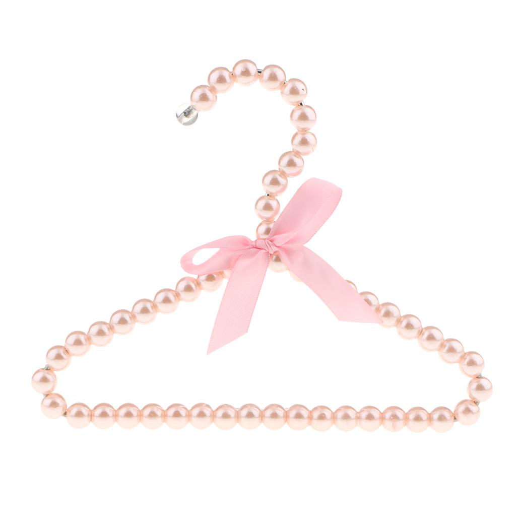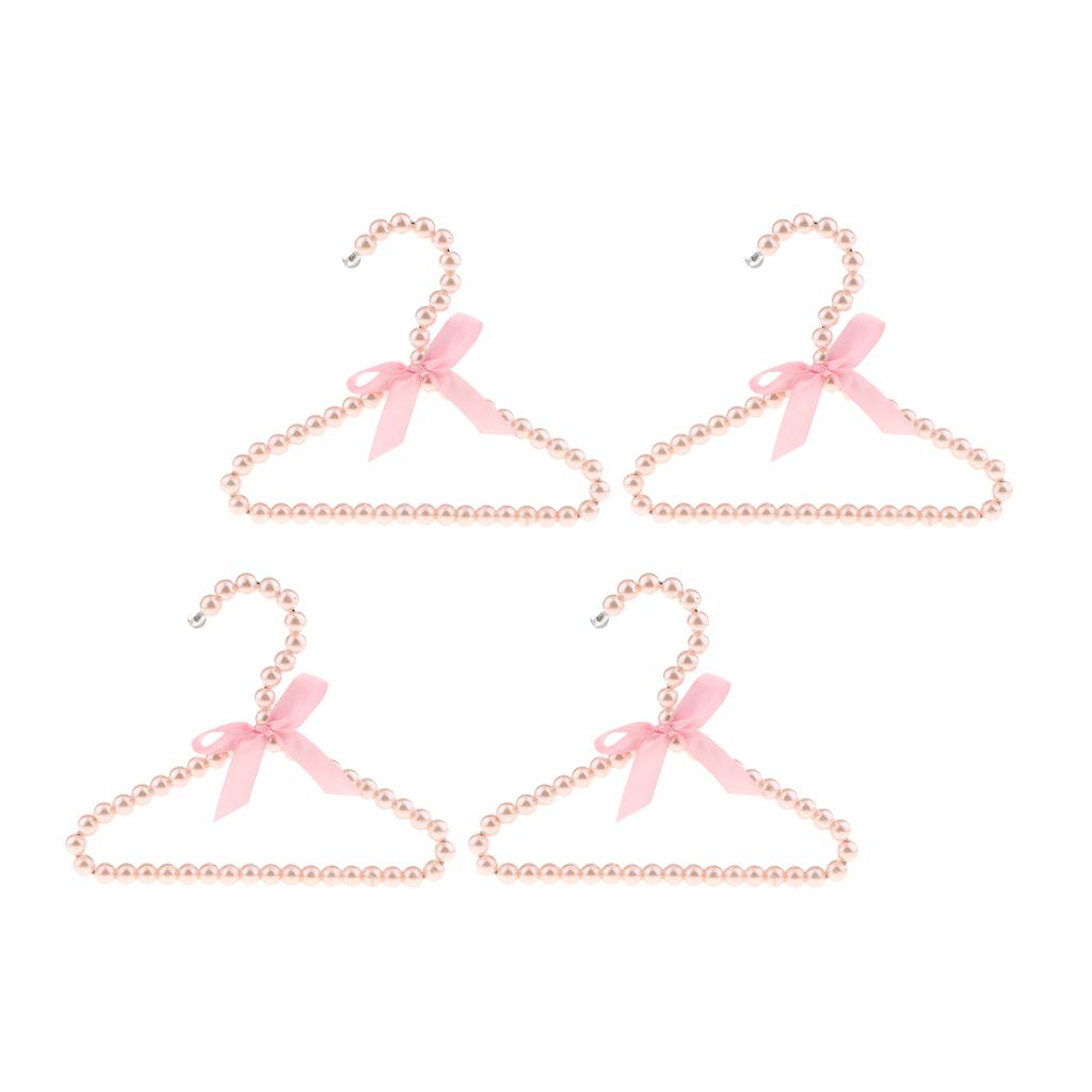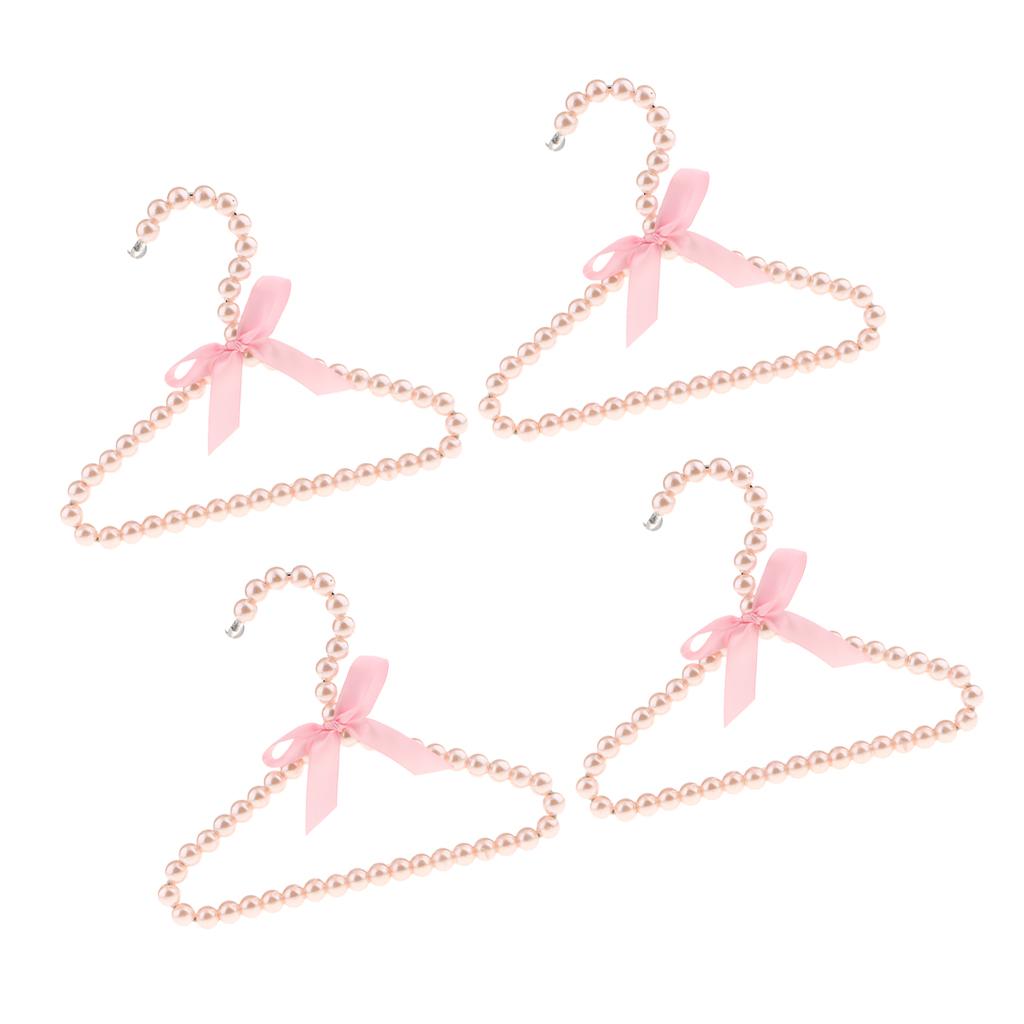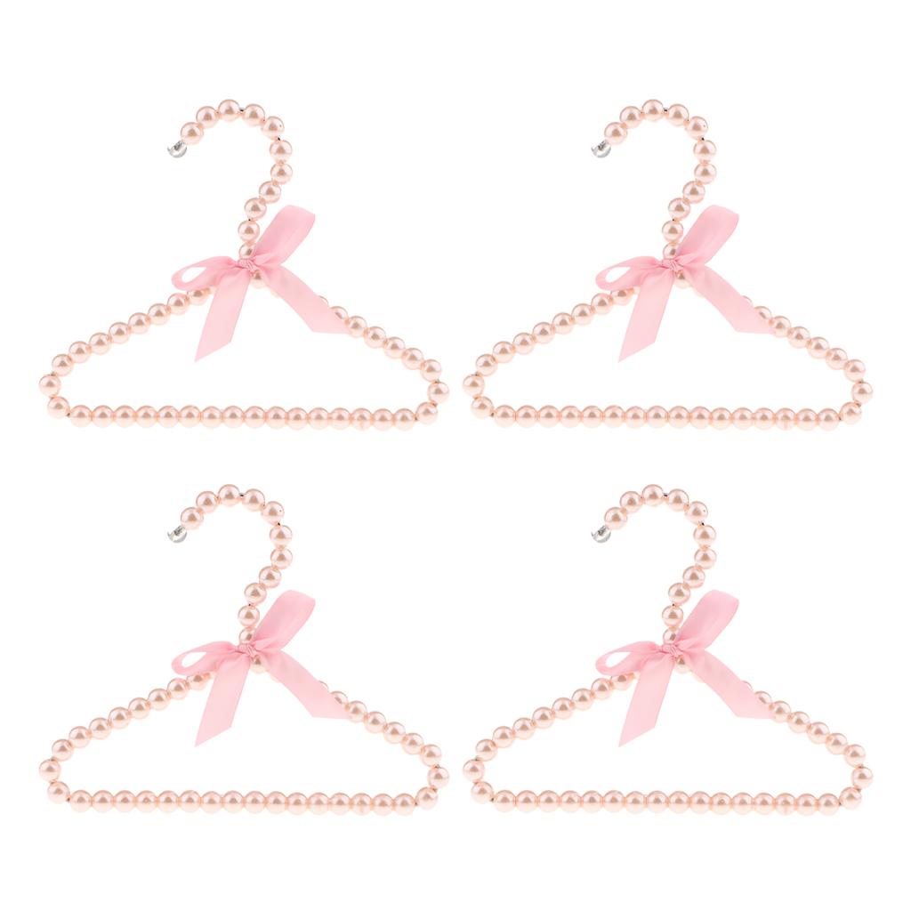 Maxbell 4pcs Pearl Beaded Kids Clothes Hanger Coat Dress Pants Hook Holder Pink