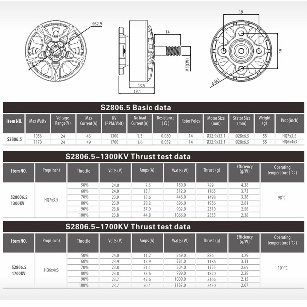 【Application】This 2806.5 1300KV Brushless Motor is for drones and electric vehicles, providing powerful and efficient performances.