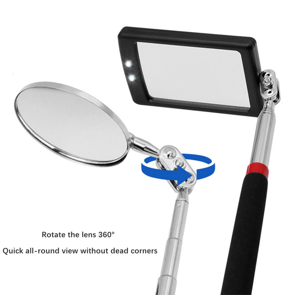 【Flexible Inspection Mirrors】: The included square and round inspection mirrors feature LED lights and can swivel up to 360 degrees, allowing you to easily inspect awkward angles or dark areas.