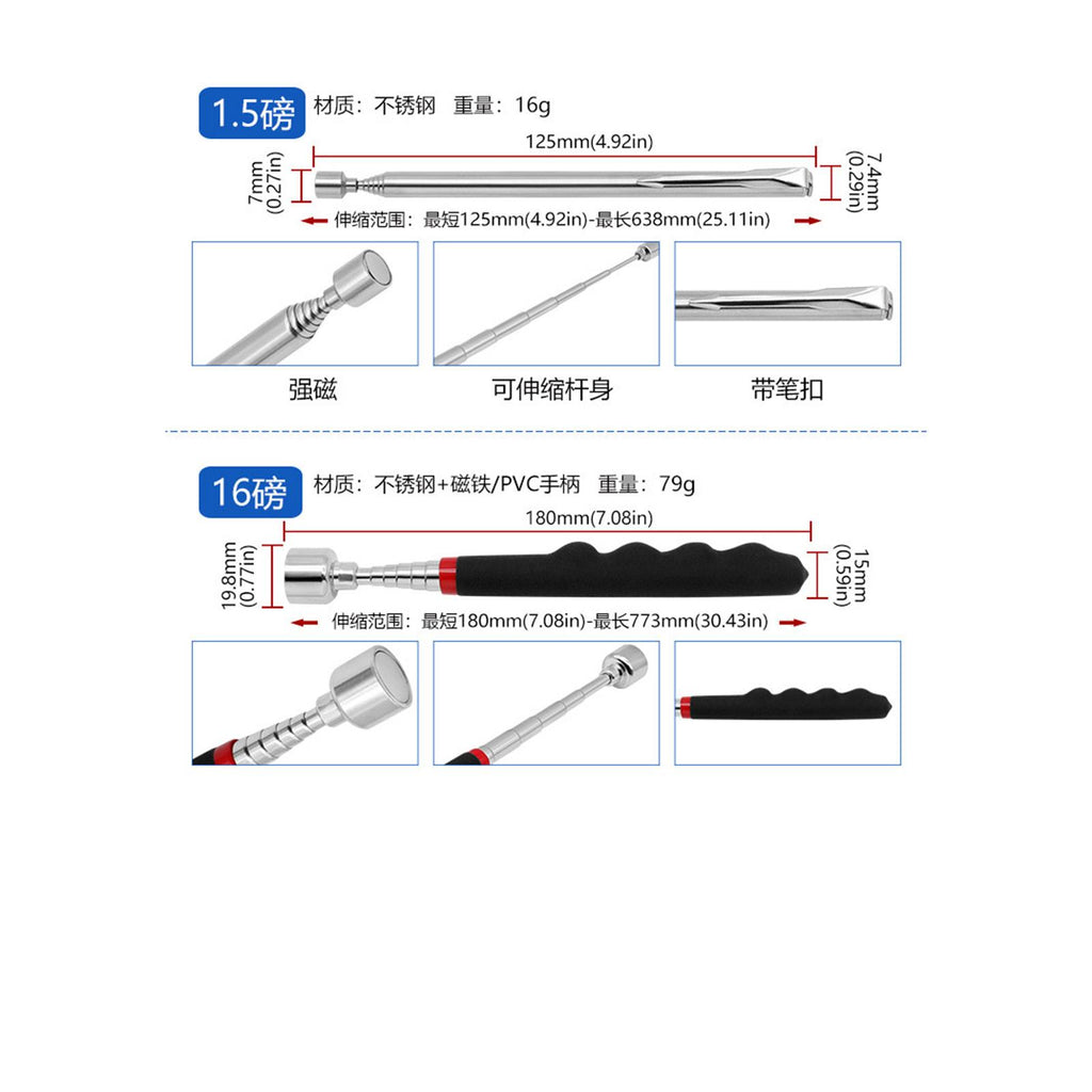【Strong Magnetic Lifting Capacity】: The magnetic telescopic pick up rods in this set can lift weights ranging from 1lb to an impressive 15 lbs, making it ideal for picking up various metal objects.