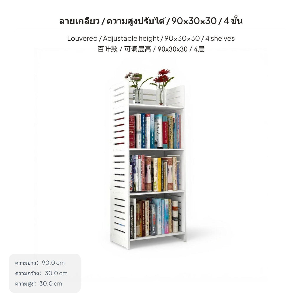 5-Tier Adjustable shelf unit, Floor Standing Storage Rack, PVC, Multipurpose Organizer for Living Room, Study, Kids, drill-free Required 90x30x30 4 Shelves