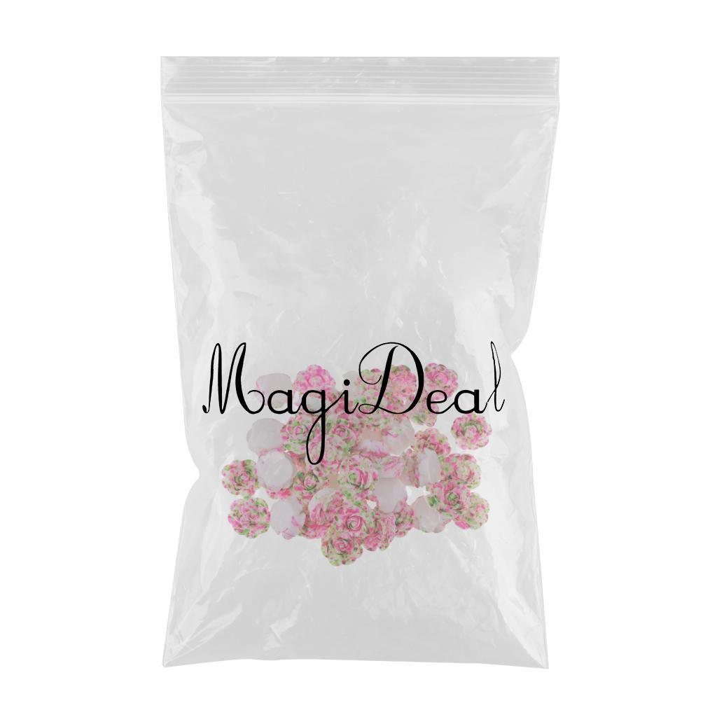 Maxbell 50Pcs DIY Resin Flower Flatback Scrapbooking for Phone Craft Applique pink and green