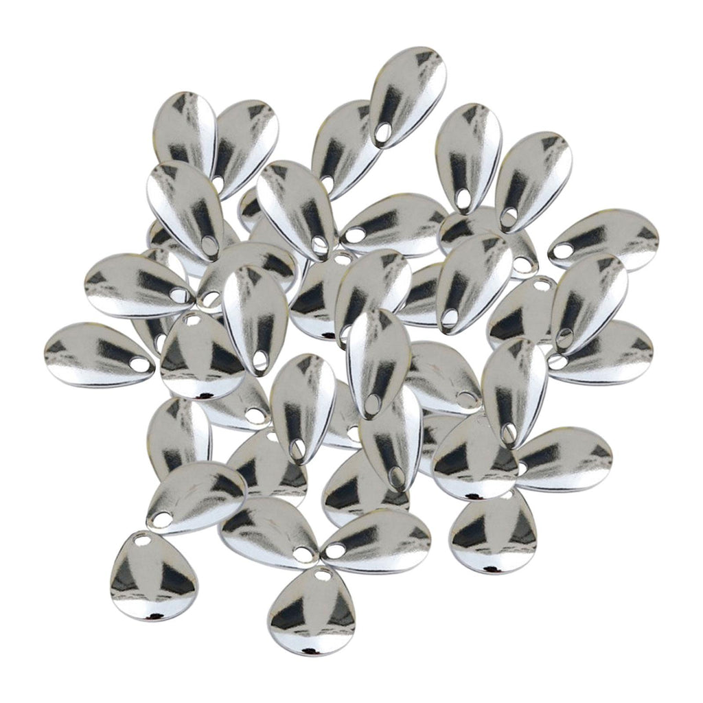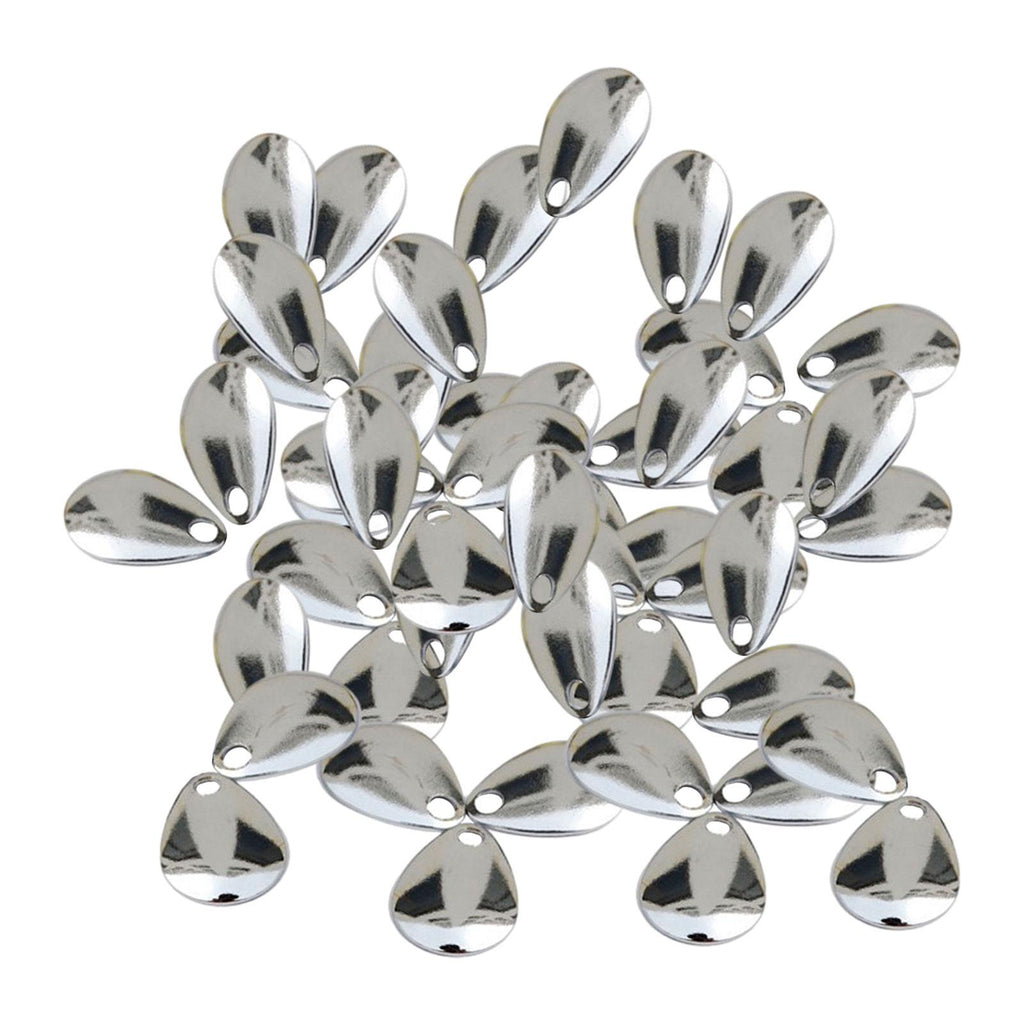 Maxbell 50Pcs Fishing Blades Tool Rigs Spinnerbaits for Perch Bass Men Women Silver 17mm