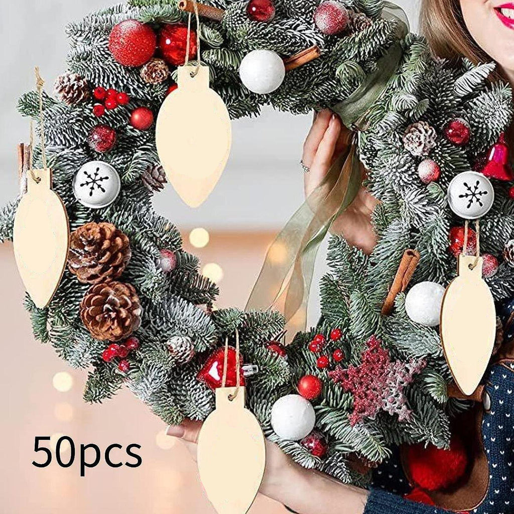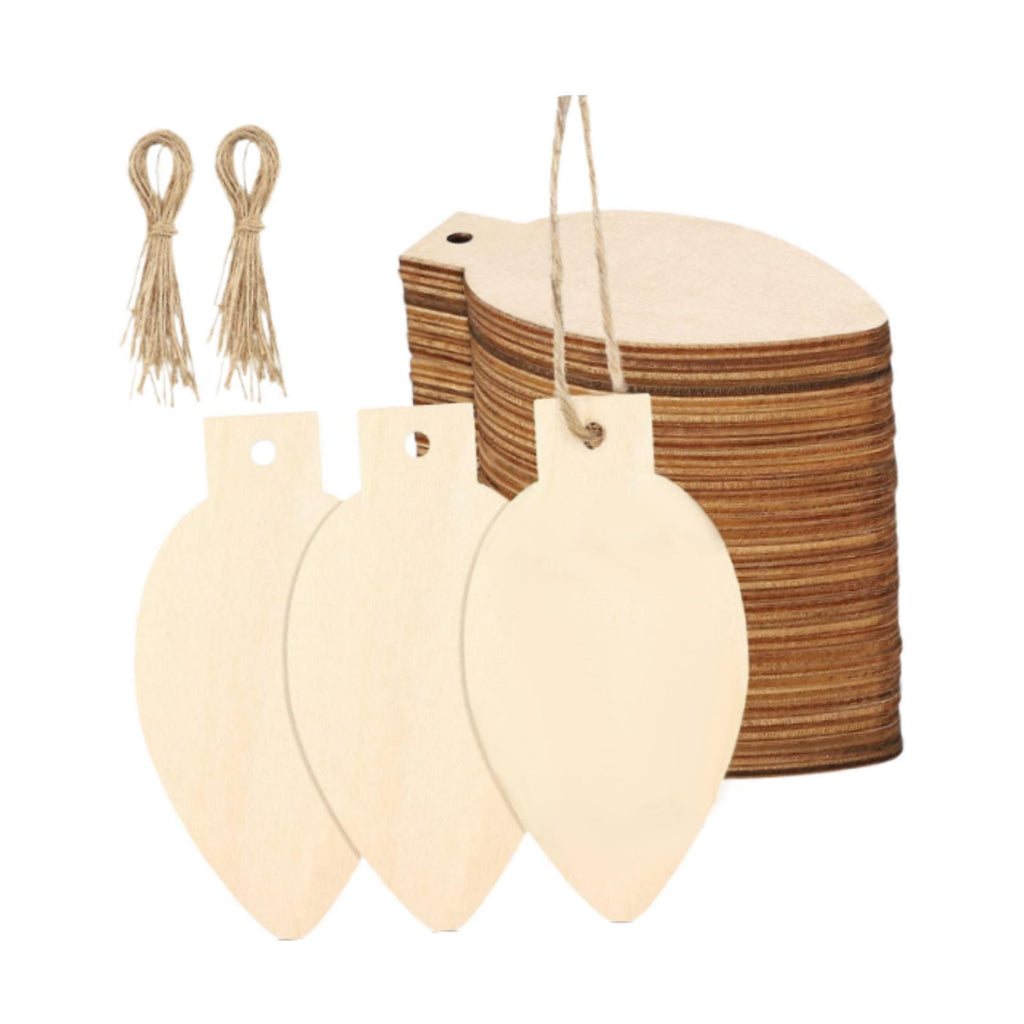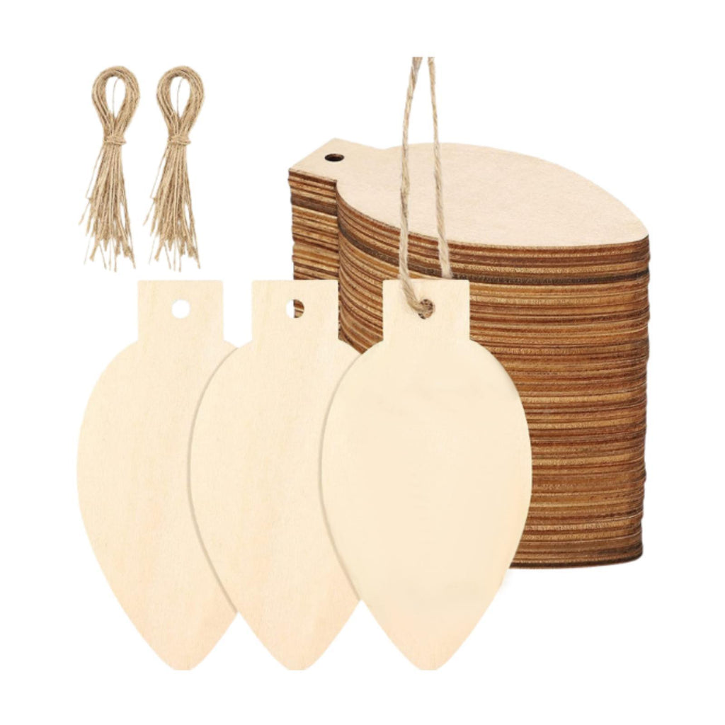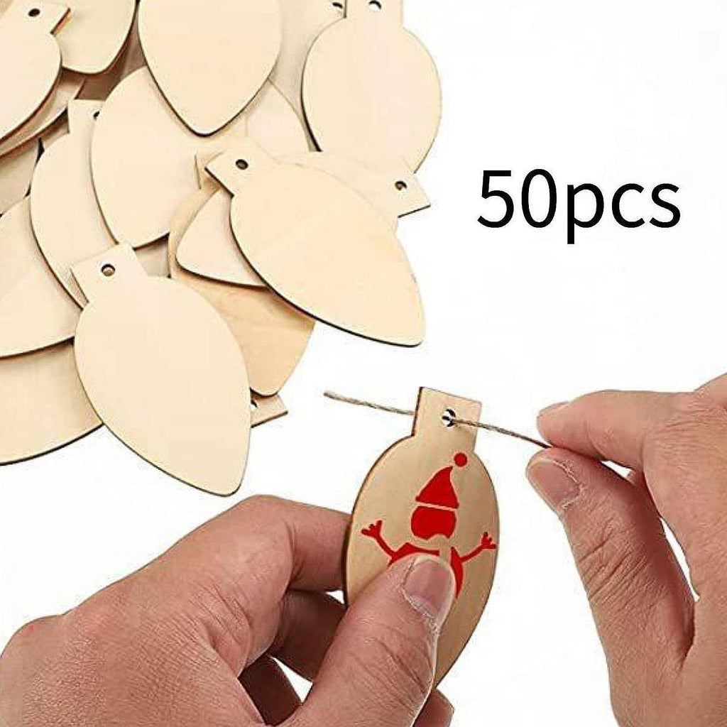 Maxbell 50Pcs Unfinished Hanging Wood Sign Blank Plaque for Kids Pyrography Painting