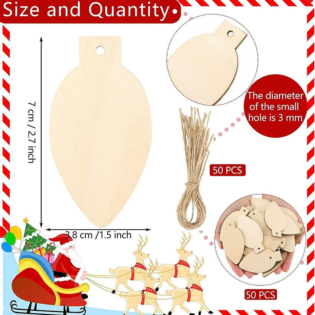 【Full set included】: The package contains 50 Wood Slices and 50 hemp ropes, giving you everything you need to create hanging decorations
