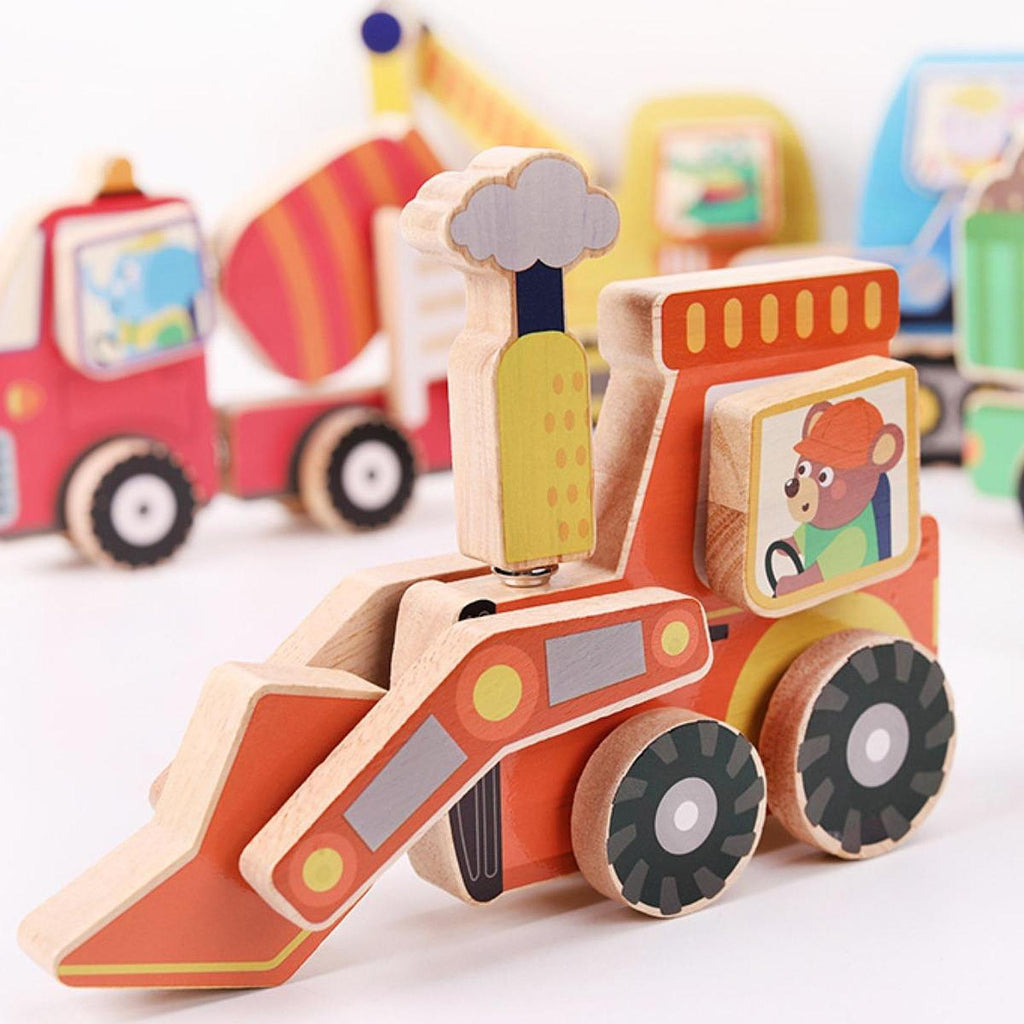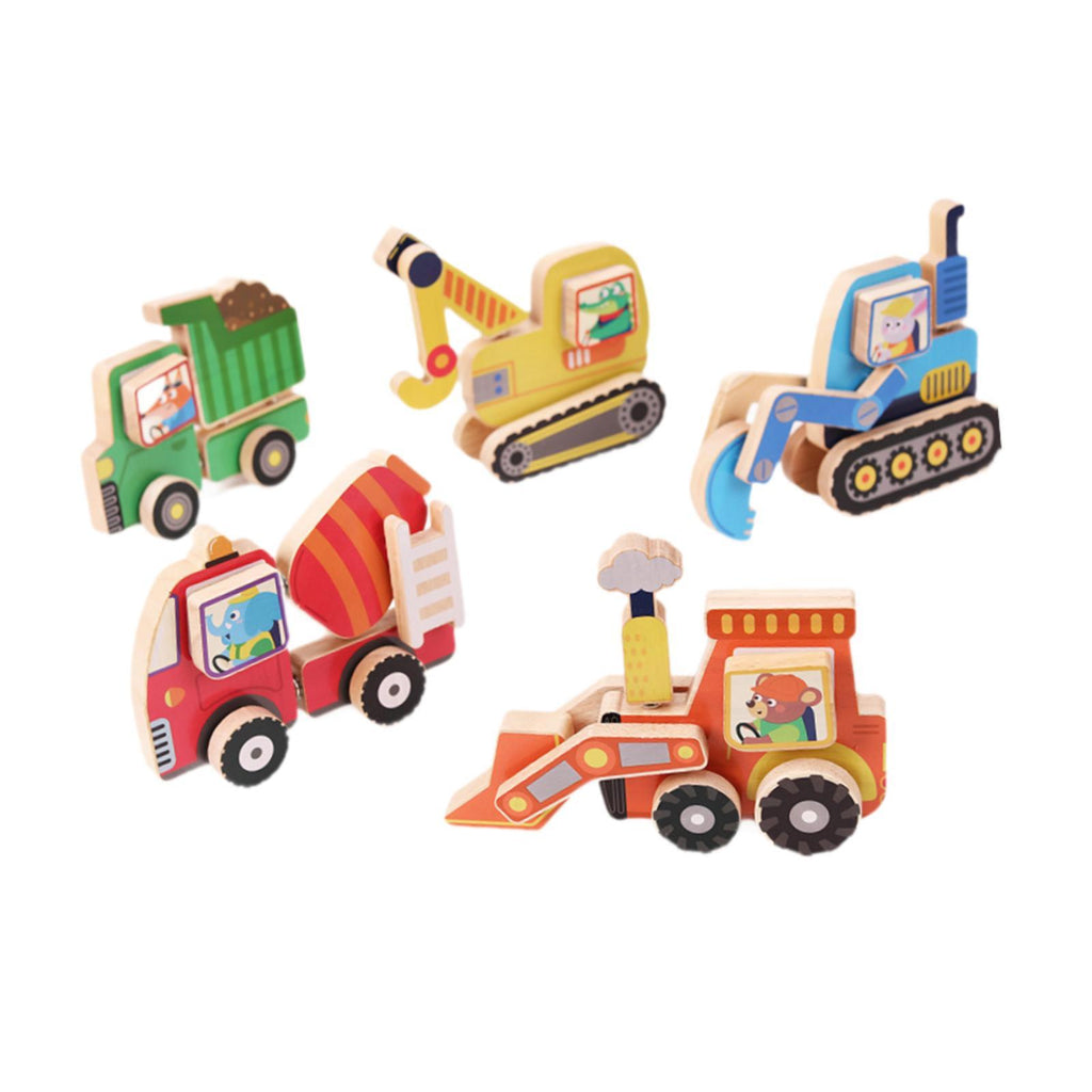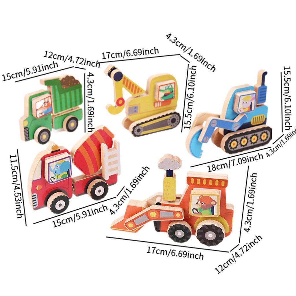 【Unleash Creativity With 5 Realistic Wooden Vehicles】: Inspire endless imagination with this new release take apart toy! Kids can build 5 brightly painted engineering vehicles (excavator, bulldozer, , dump truck) or mix & match pieces to design their own creations