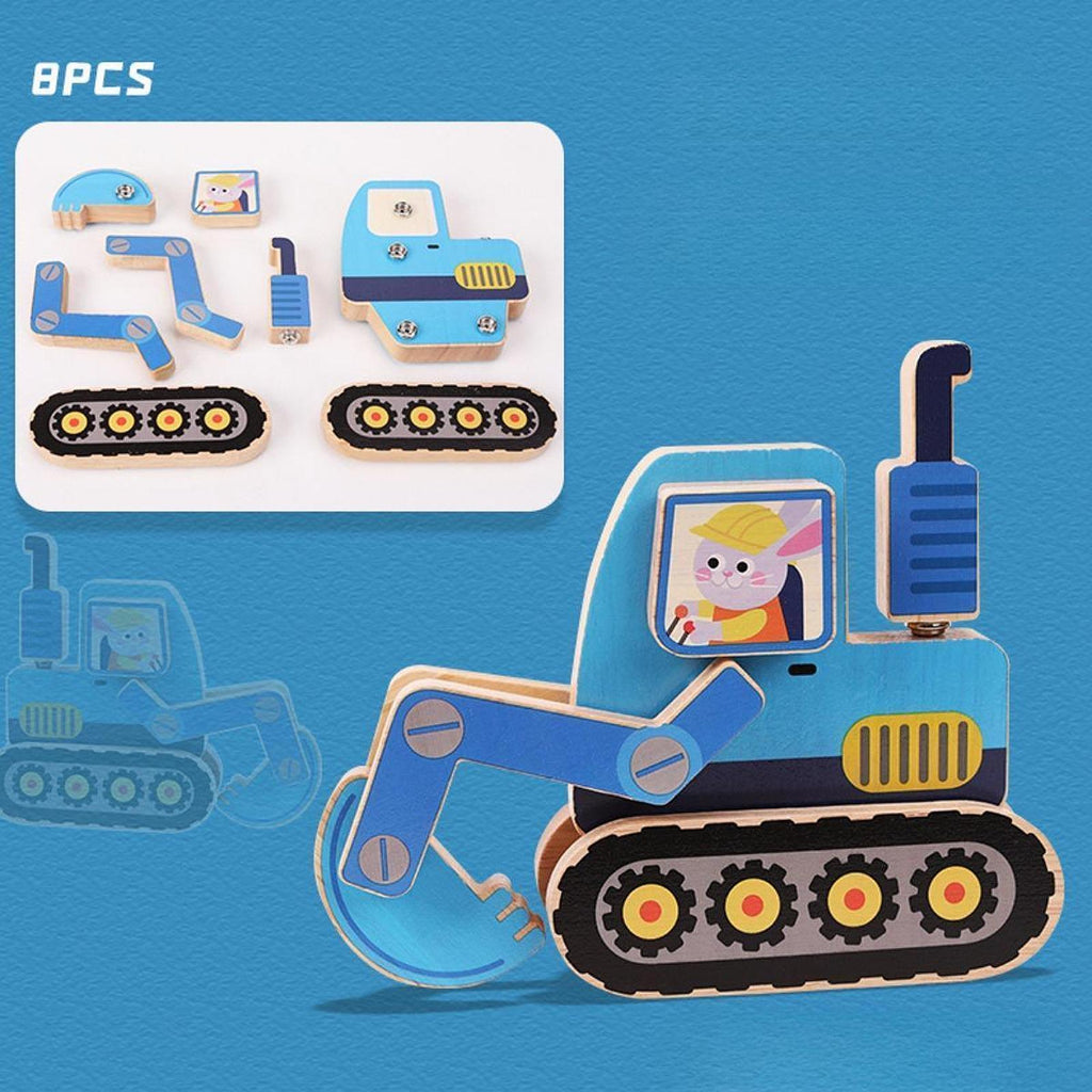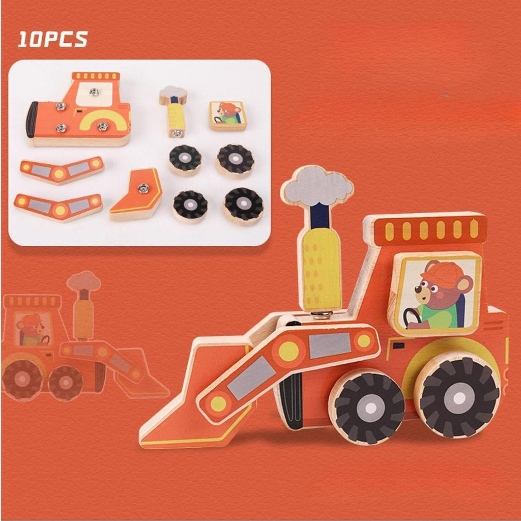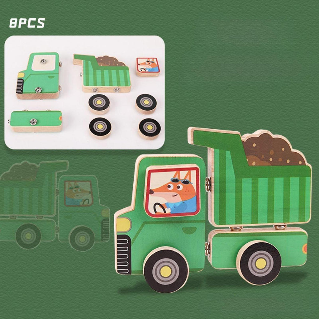 【Unleash Creativity With 5 Realistic Wooden Vehicles】: Inspire endless imagination with this new release take apart toy! Kids can build 5 brightly painted engineering vehicles (excavator, bulldozer, , dump truck) or mix & match pieces to design their own creations