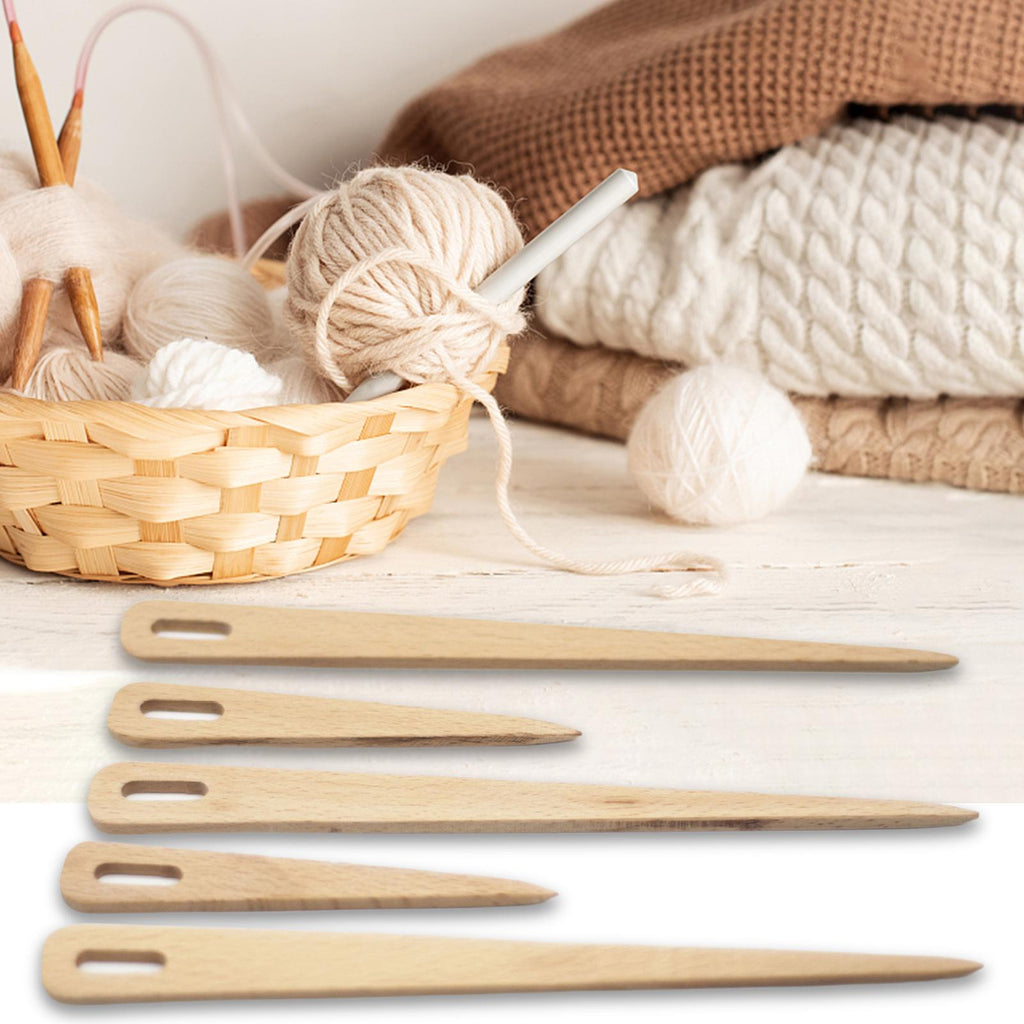 Maxbell 5x Big Eye Knitting Pins Set Wooden Hand Loom Sticks for Tapestry Handcrafts