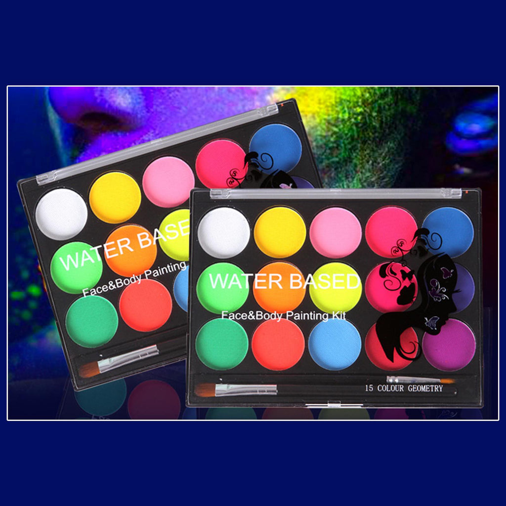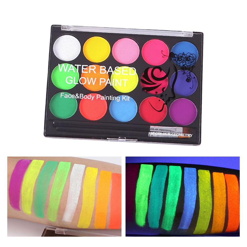 Face Paint: 15 Colors of fluorescent water soluble face body paint with a brush, easy to color and blend, convenient to use.