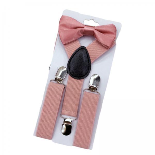 Maxbell 5xKids Suspenders with Bow Tie Y Back Durable for suits Trousers Dance Costume Pink