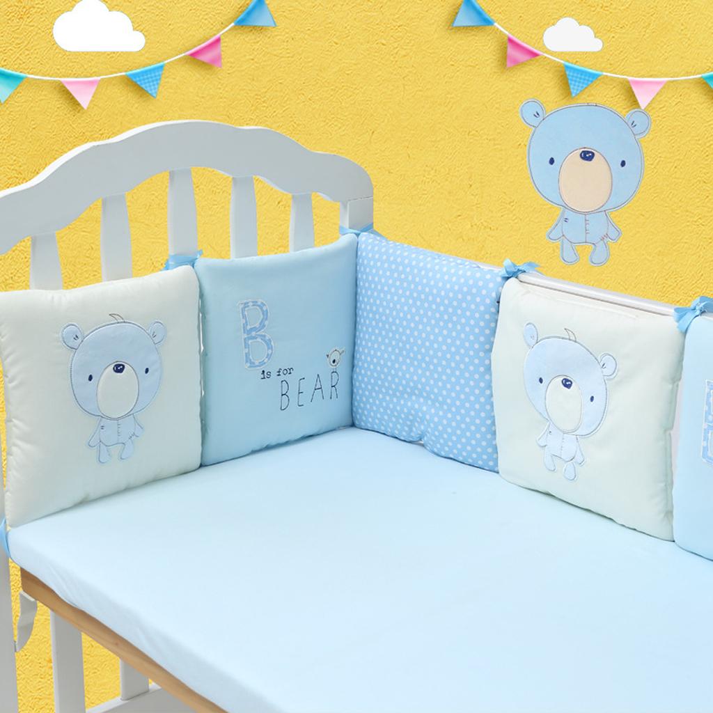 Maxbell 6PCs Baby Crib Bumper Cotton Infant Bed Cot Protector Blue bear