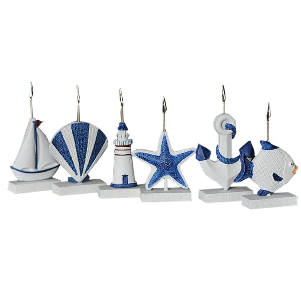 6Pieces /Set Name Card Clip Stand( Fish,anchor,starfish, lighthouse,shell,boat shaped base)