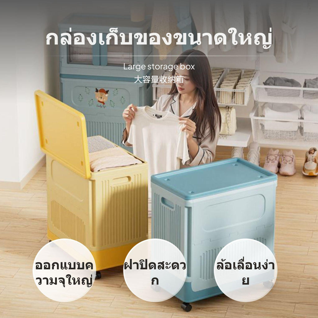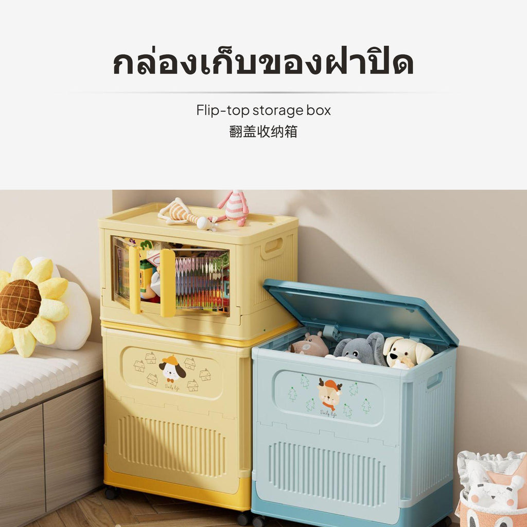 75L Large Capacity Storage Box, Flip Lid Organizer with casters, Stackable Toy and Clothes Bin for children' Room[Convenient Mobility with casters] Equipped with 360° universal casters, this storage box allows for easy movement, making it easy to clean and reposition in any space.[Adaptable Flip Lid Design] Features a hinged lid opening for easy entry, allowing quick retrieval of items with just single hand. Some design type include double doors for added flexibility.[Space-Saving Stackable & Foldable] Designed for stackable configuration and collapsibility, this organizer adapts to your space needs and optimizes upright storage potential.[Stylish choices for Any Room] Available in playful cartoon designs and minimalist plain hues, this box complements both kids' rooms and modern home décor effortlessly.Specification: