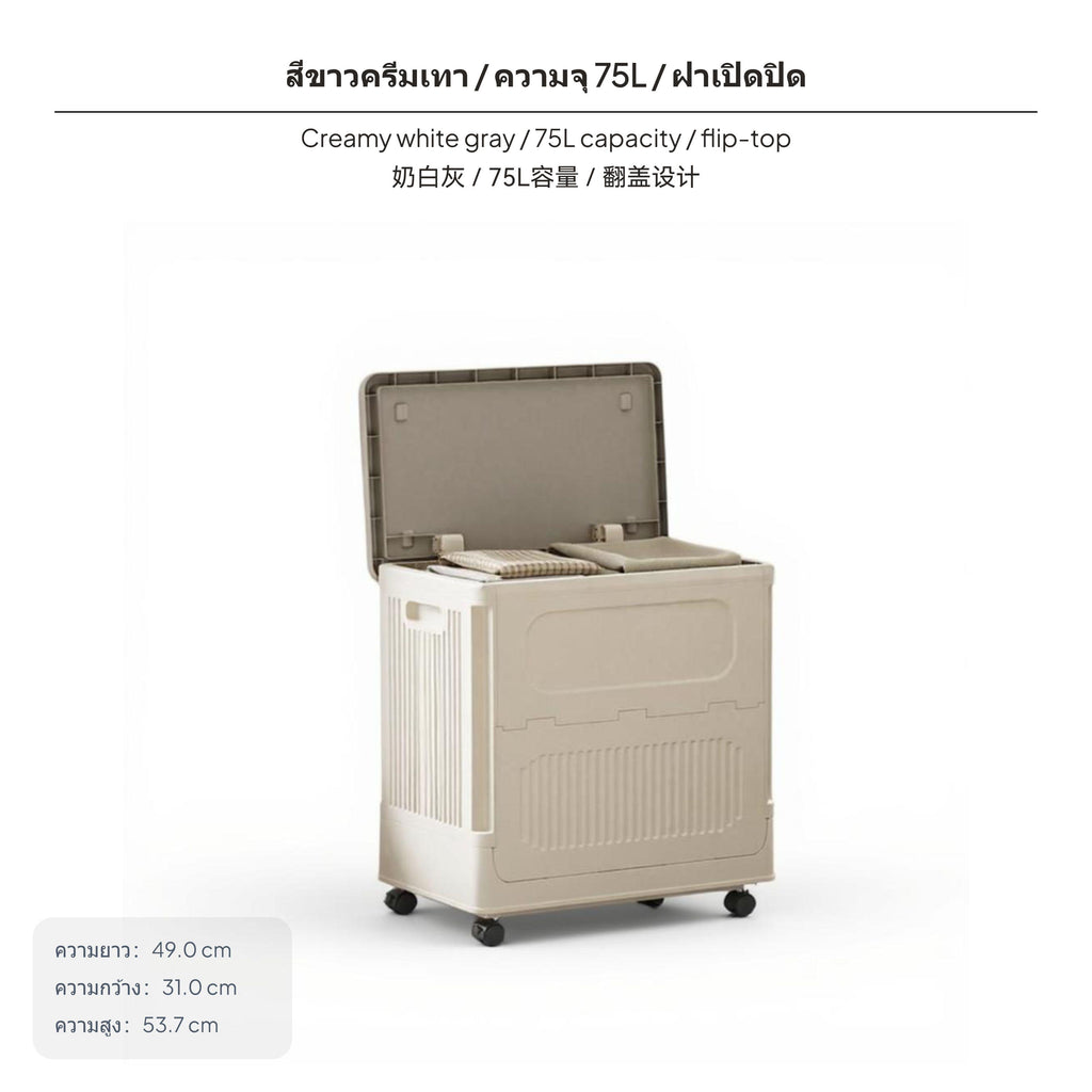 75L Large Capacity Storage Box, Flip Lid Organizer with casters, Stackable Toy and Clothes Bin for children' Room Creamy White Gray