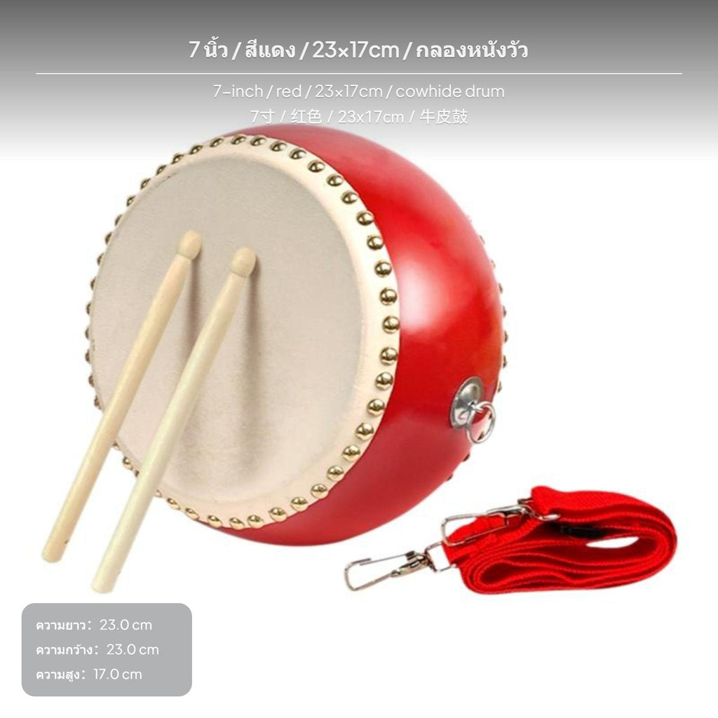 【Versatile 8-Inch Cowhide Drum】This 8-inch cowhide drum is designed for children ages 3-10, combining hand tapping and striking functions for music learning and performance activities.【Premium Materials】Features a thick cowhide drumhead, sturdy plastic body, and reinforced metal rings and rivets for crisp sound and lasting durability.【Safe & Eco-Friendly Design】Drum body coated with odorless eco-friendly lacquer, includes polished solid wood drumsticks and a quality fabric strap for safe play and easy carrying.【Wide Application Scenarios】Perfect for preschool, home entertainment, dance classes, school performances, and group activities, helping children develop rhythm and musical skills.【Multiple Sizes & Patterns Available】Choose from various sizes (5in/6in/7in/8in) and fun cartoon patterns (Nezha, Lucky Dragon) to suit different ages and preferences.