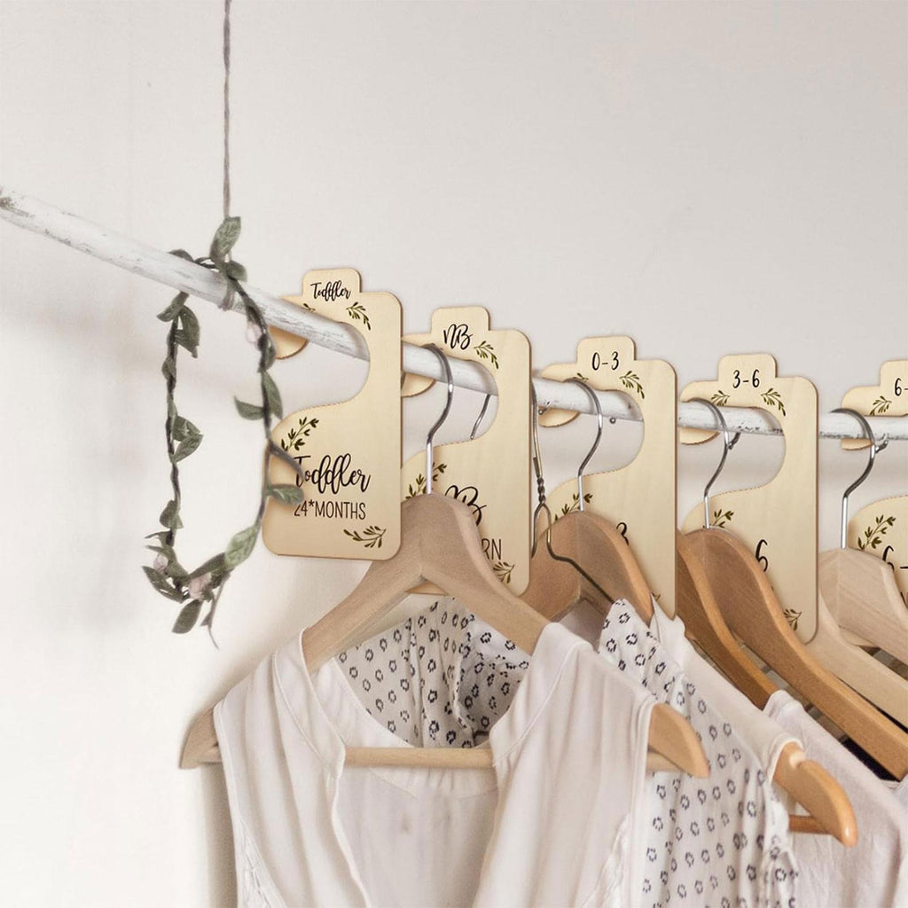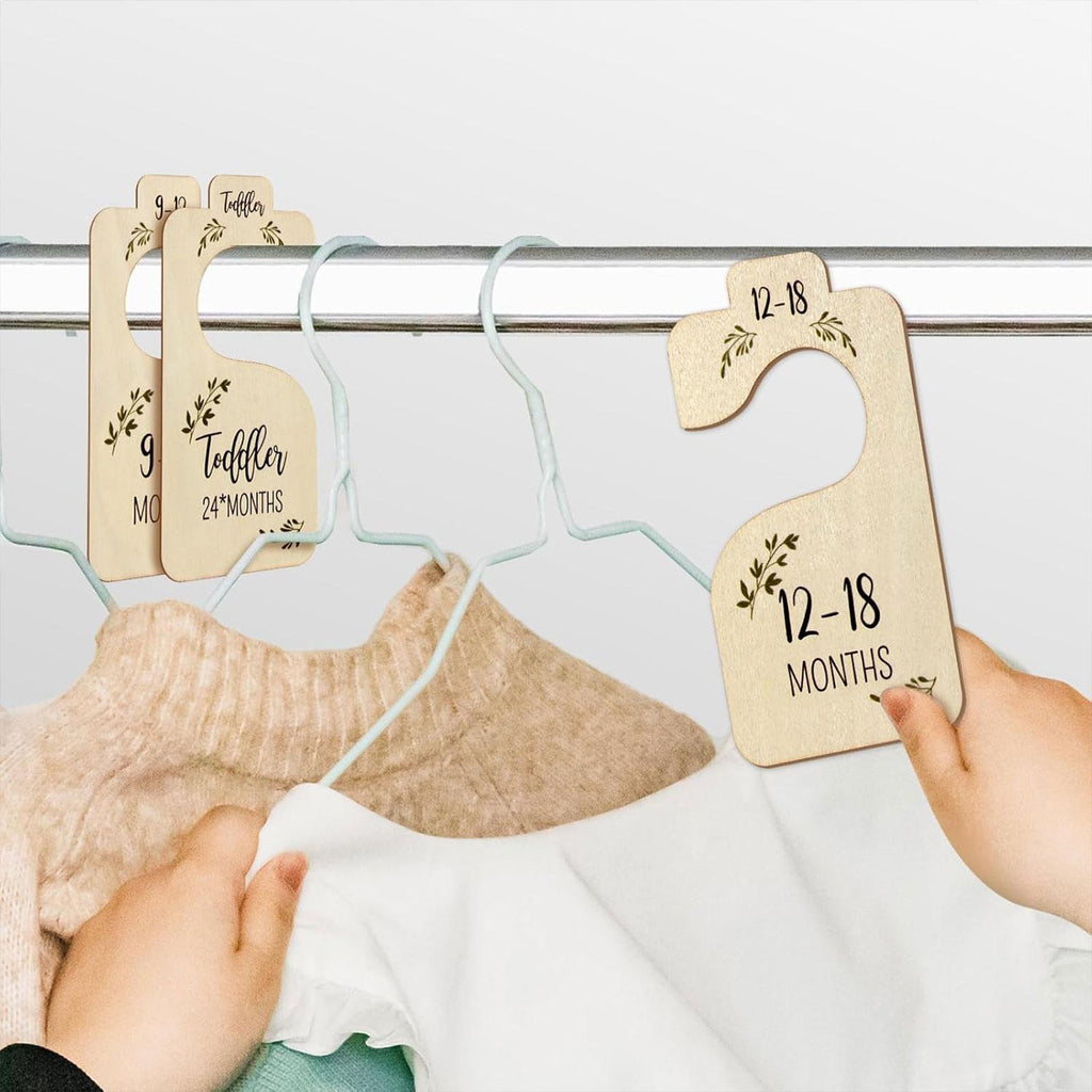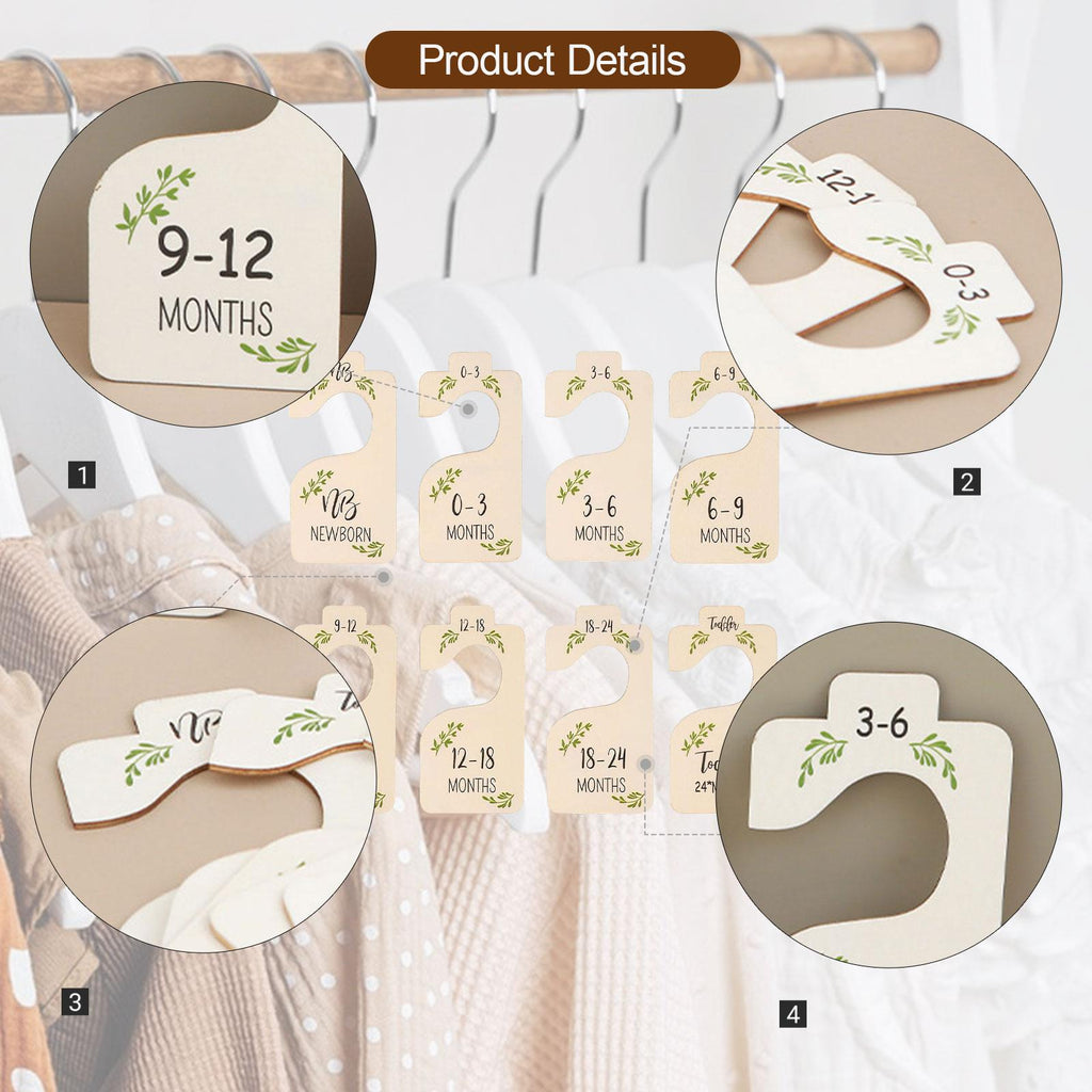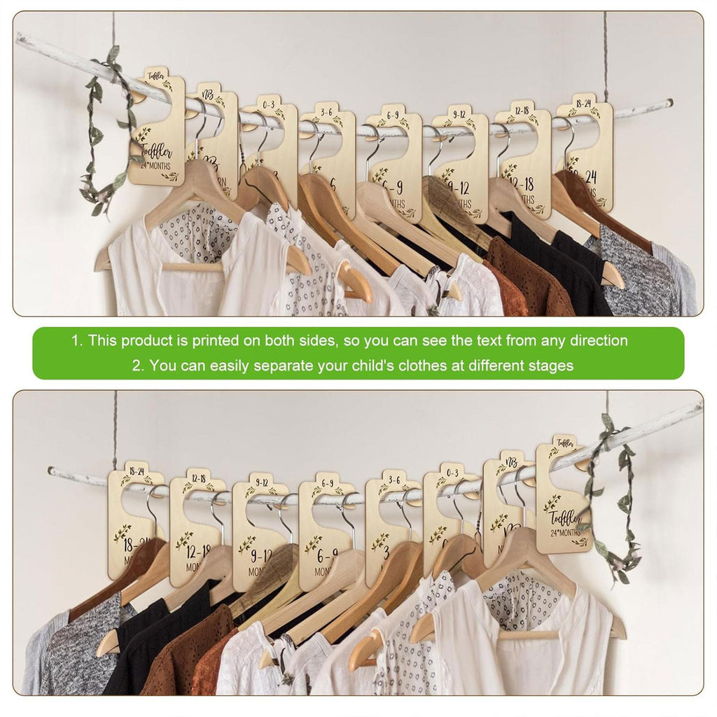 - 【Material】: Baby clothes size hanger organizer is made of wood material with smooth surface and long time usable