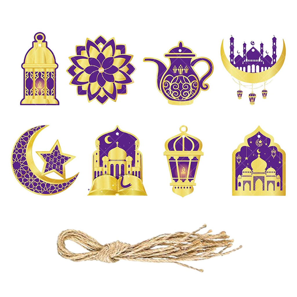 Maxbell 8 Pieces Eid Pendant Ornaments Ramadan Hanging Pendant for Bedroom Home Door Violet and Gold