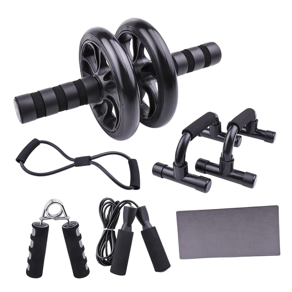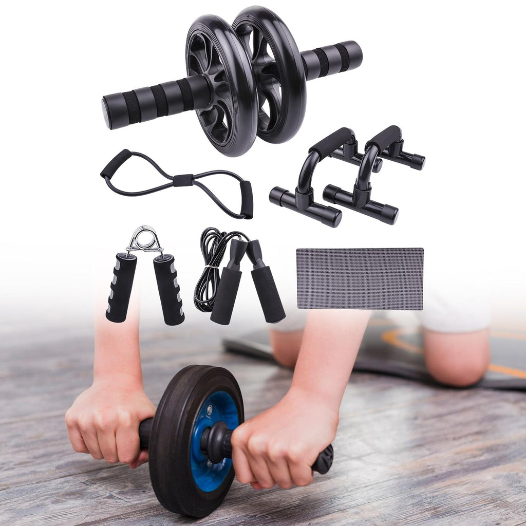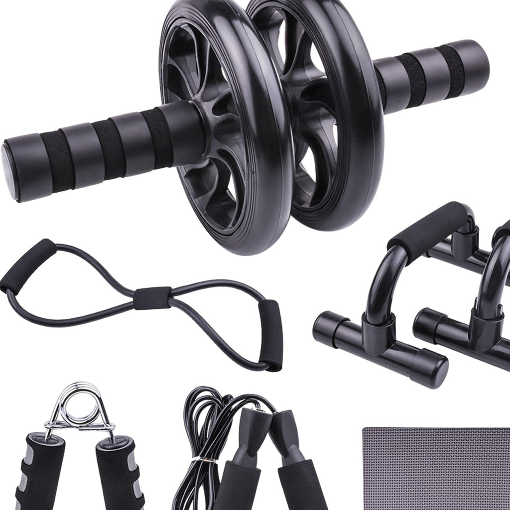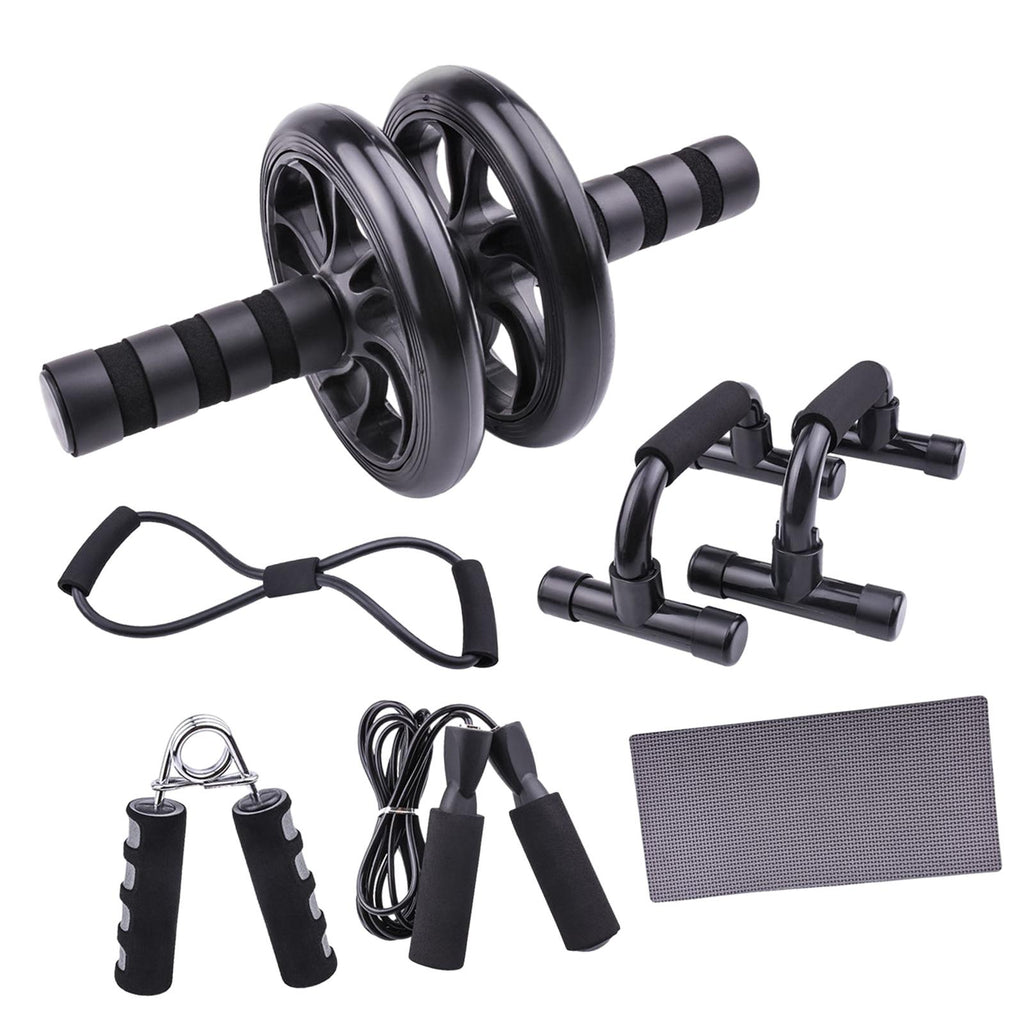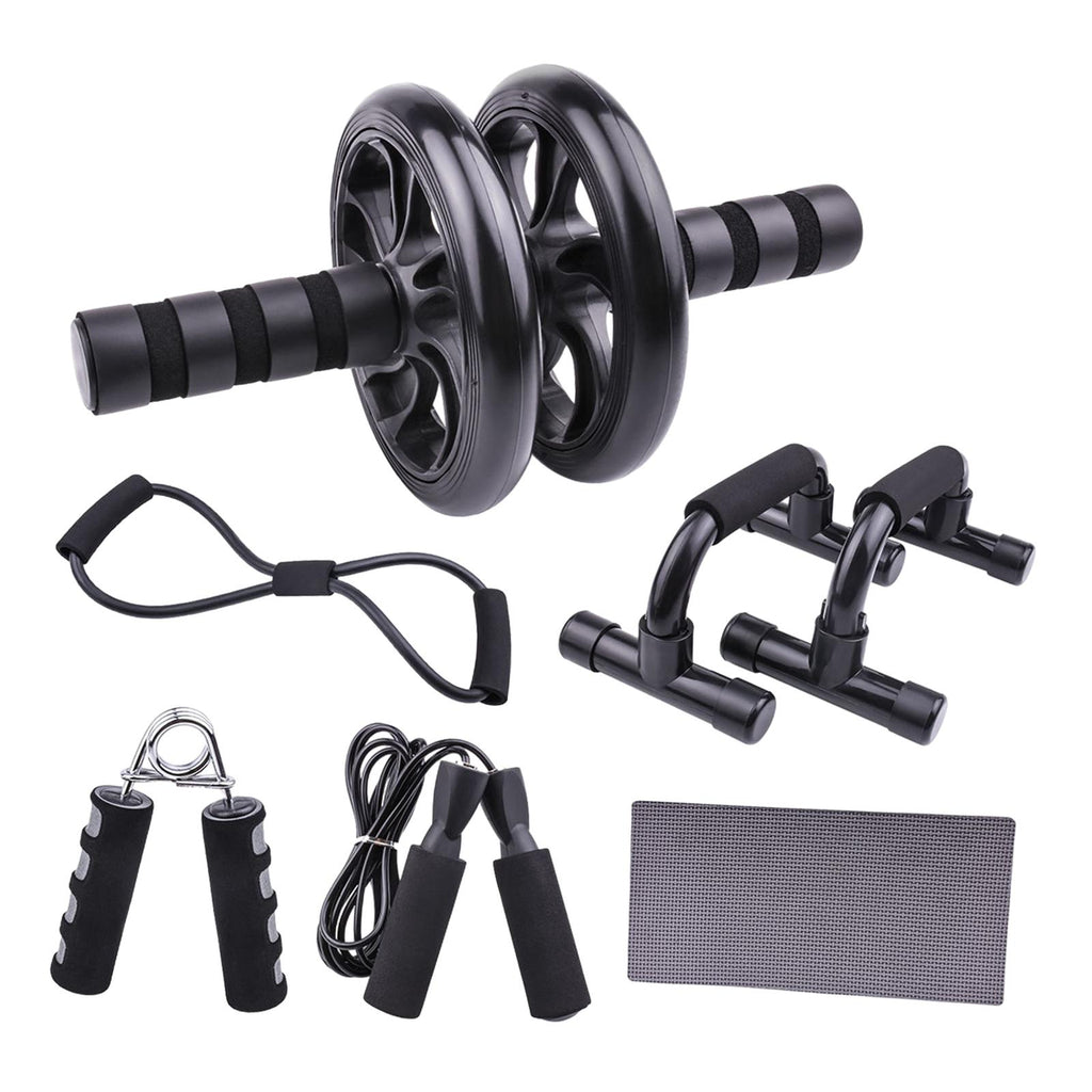1 Abs Roller Wheel, 2 Push Up Bars, 1 Knee Pad, 1 Jump Rope, 1 Hand Gripper, 1 Resistance Band