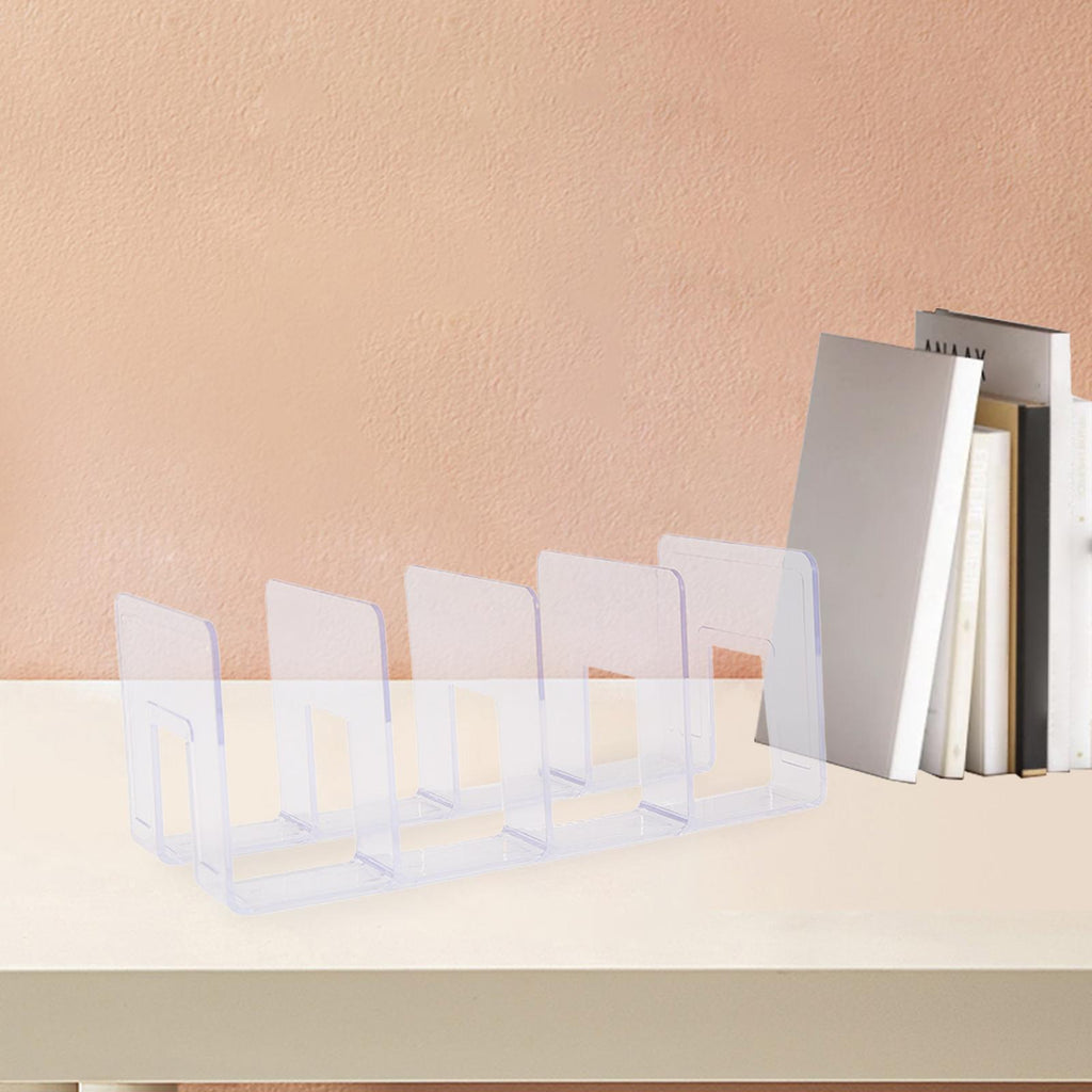 【Product】: Acrylic Book Stand with four compartments, suitable for book storage and organization.