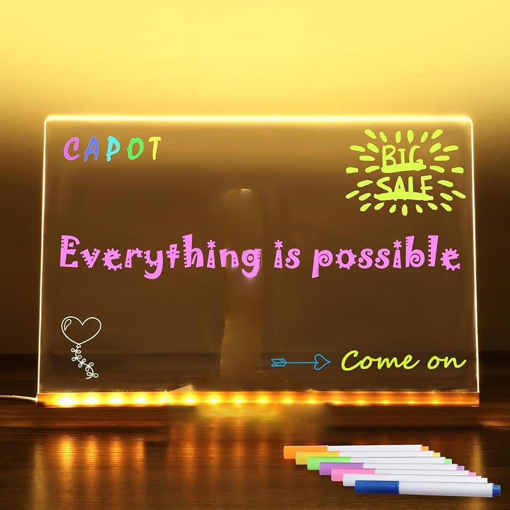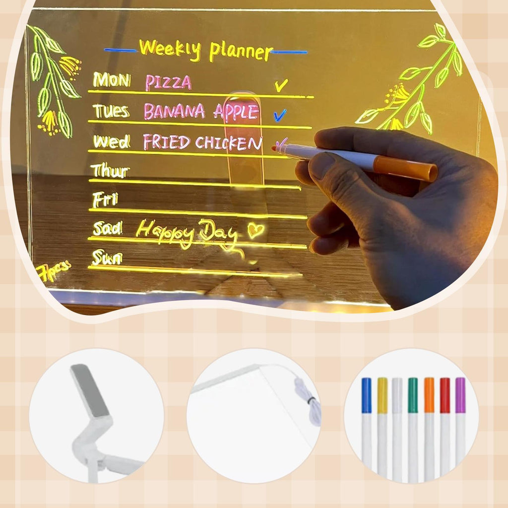 Acrylic Dry Erase Light Board with Stand LED Note Board for Room Kids Office