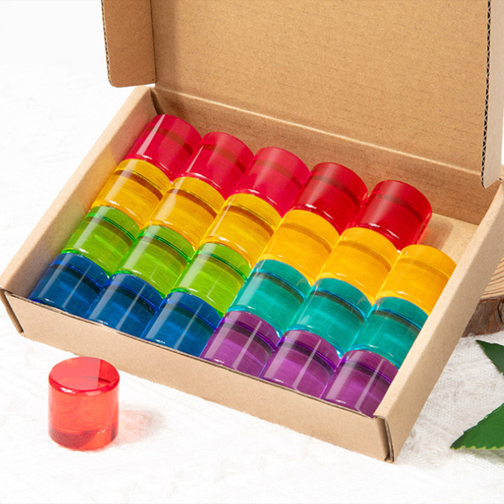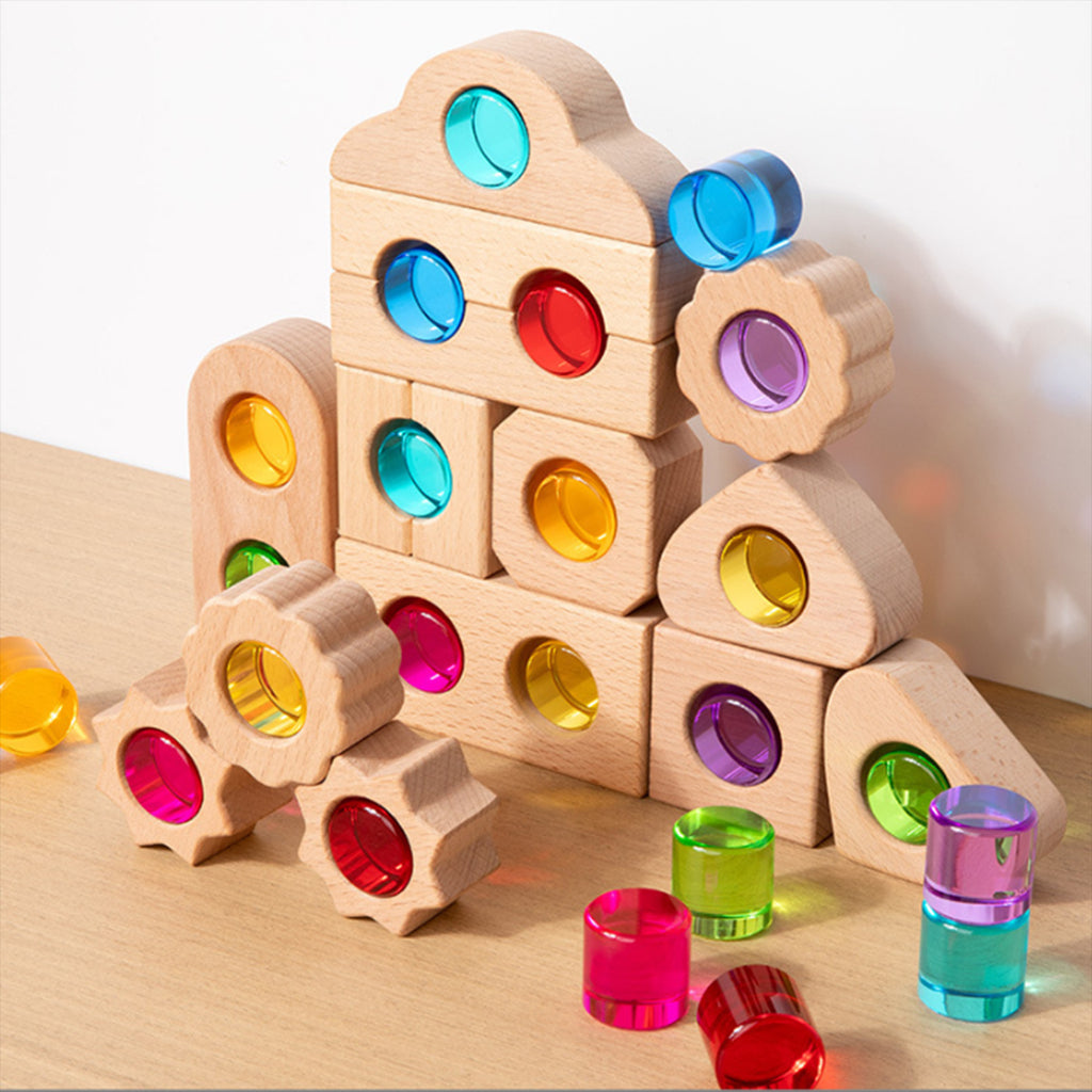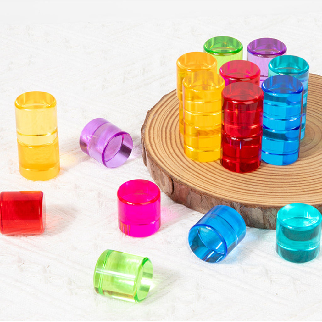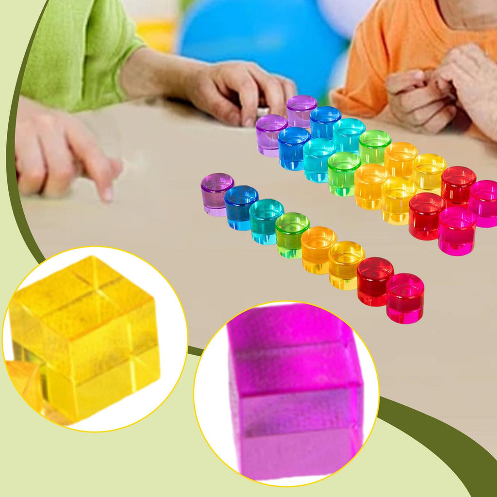 - 【 Play】: Acrylic Gem Stacking Blocks is Made from highly transparent acrylic, each block boasts colors and a high gloss finish. When light shines through, they create stunning, colorful shadows, captivating children's attention and inspiring a fascination with light, color, and sensory exploration. They're perfect for use on a lighted table or near a sunny window