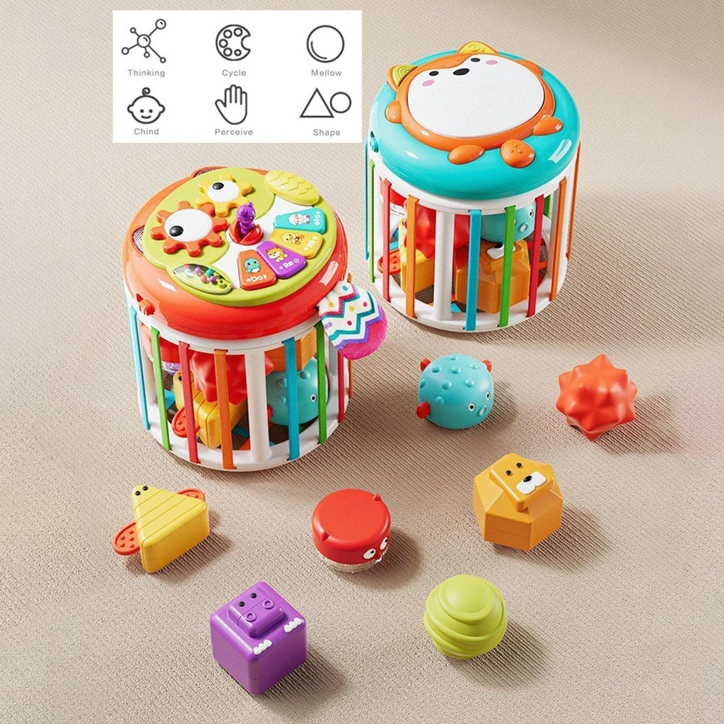 【Perfect Gift】This sensory sorting shape toy is perfect as a gift for your baby's birthday, Children's Day, Christmas, Easter and New Years, providing endless educational fun. The baby tries to put the blocks into the frame by pushing on the elastic and take them out.