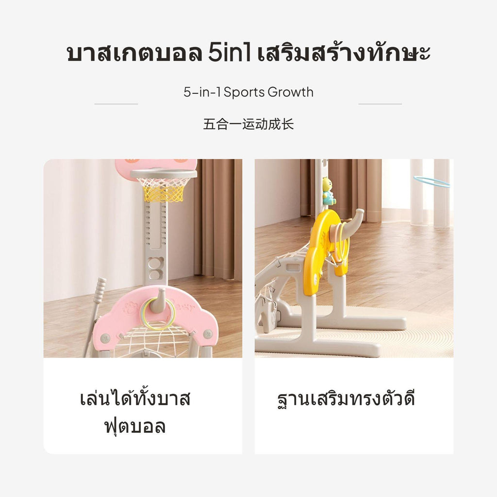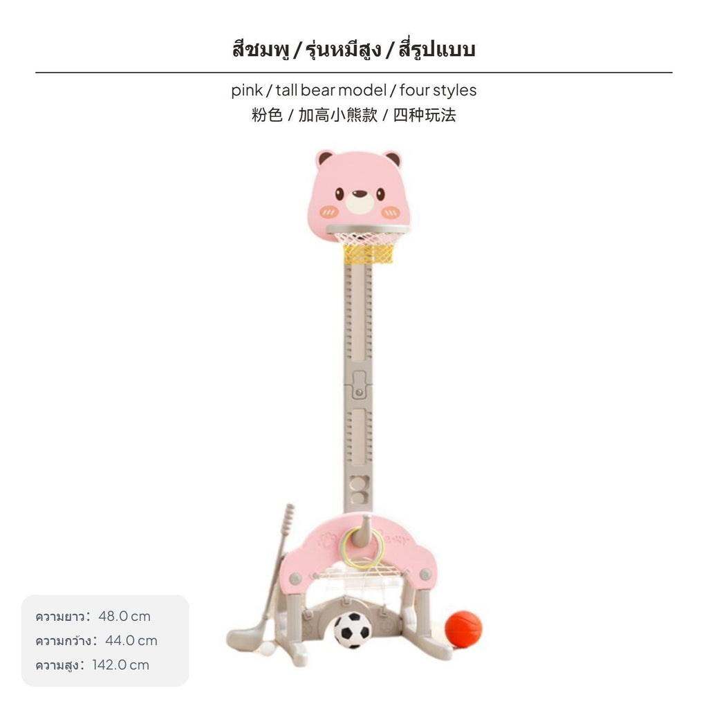 Adjustable Kids Basketball Hoop, 5-in-1 Sports Toy, Bear Design, Indoor TallHoop4in1 Pink