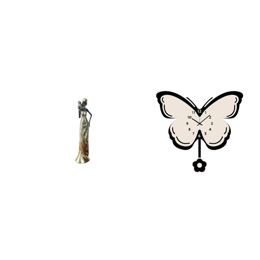 African Women Figurine Sculpture with Butterfly Clock Lightweight Decorative Home Decor for Hotels Office Dining Room Kids Room Farmhouse