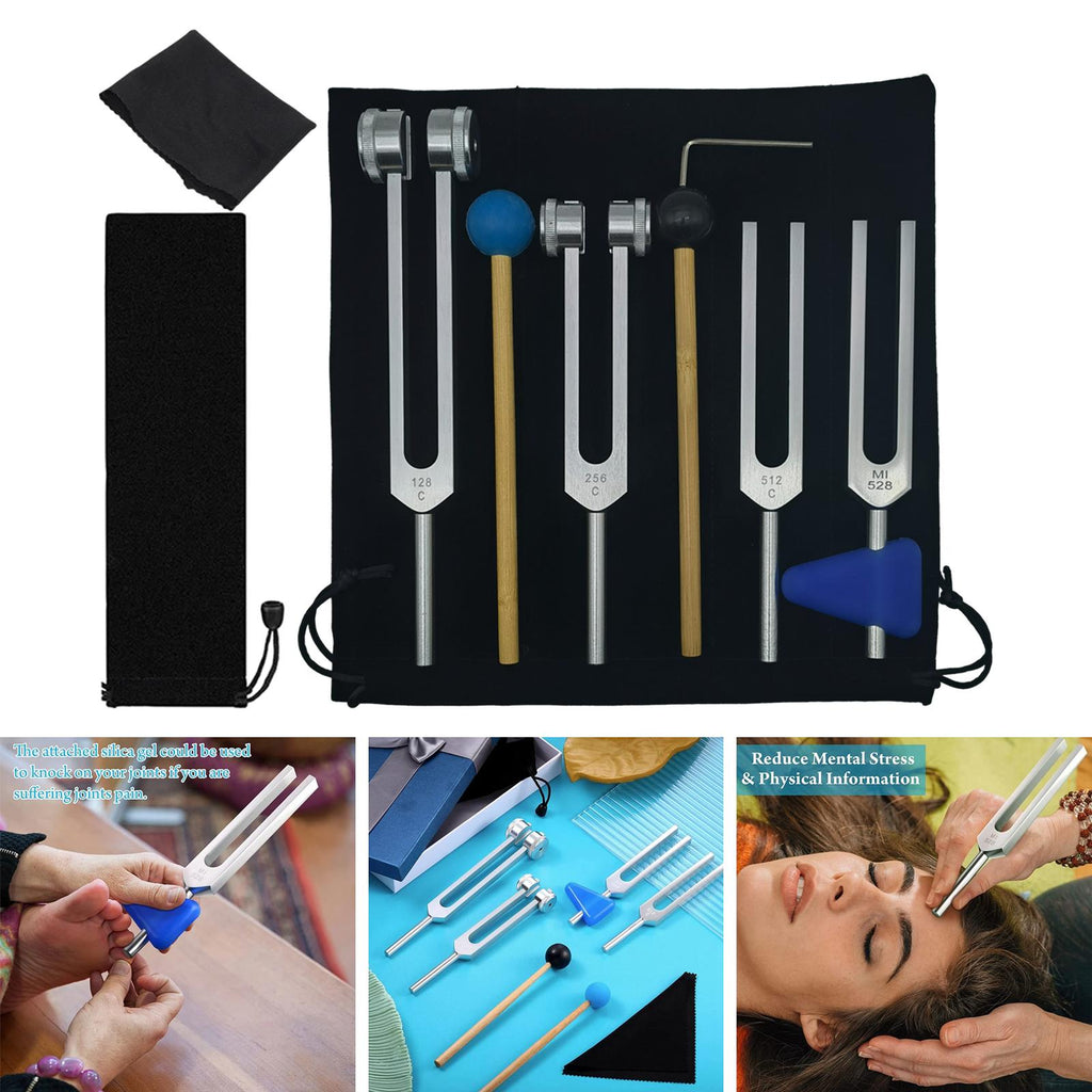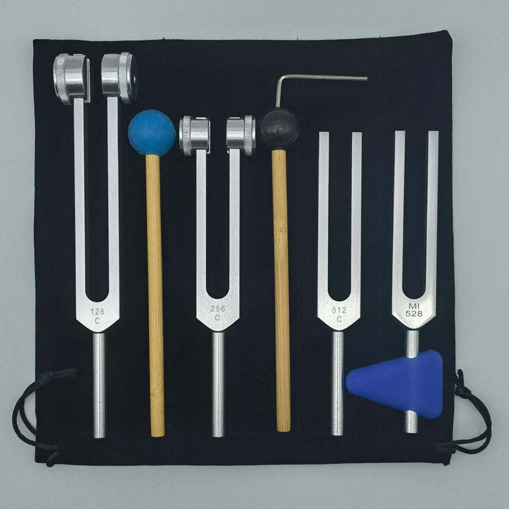 【Feature】: Tuning forks with ergonomic designs are made of reliable materials, compact in size and light in weight, you can put them in your bag or store them in pouches provided, and then carry them around with you.