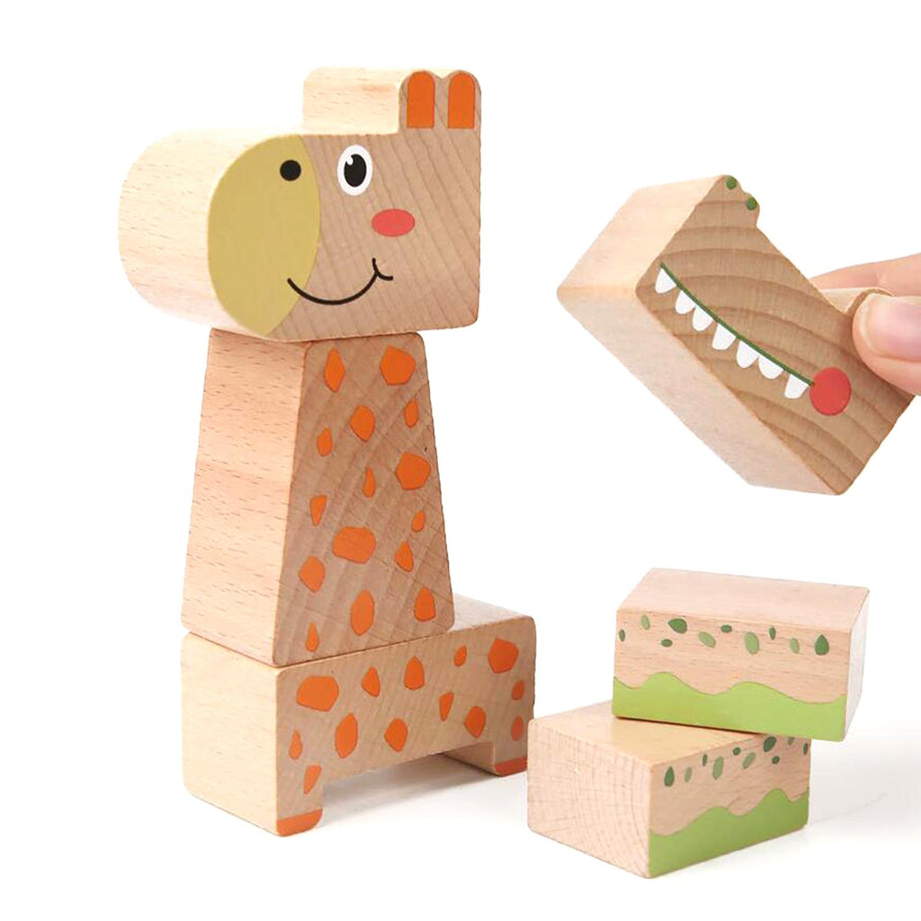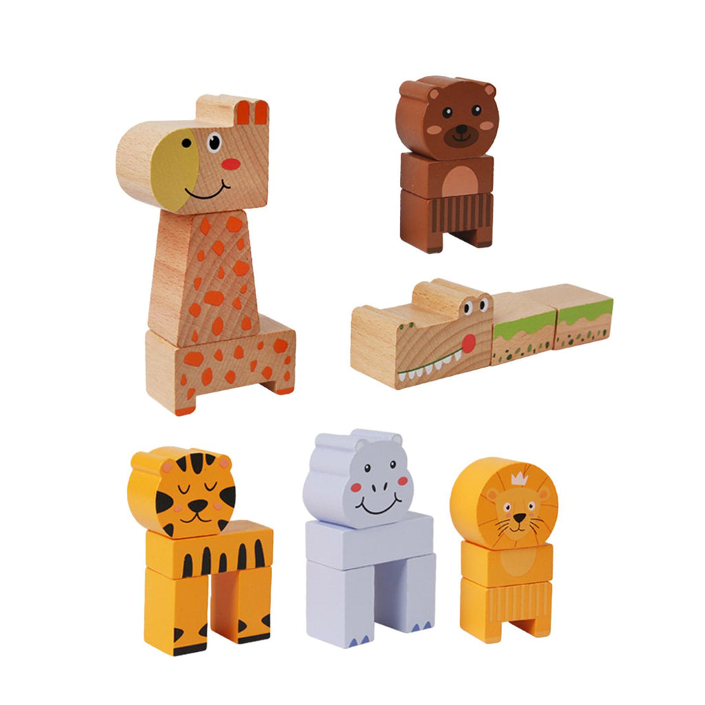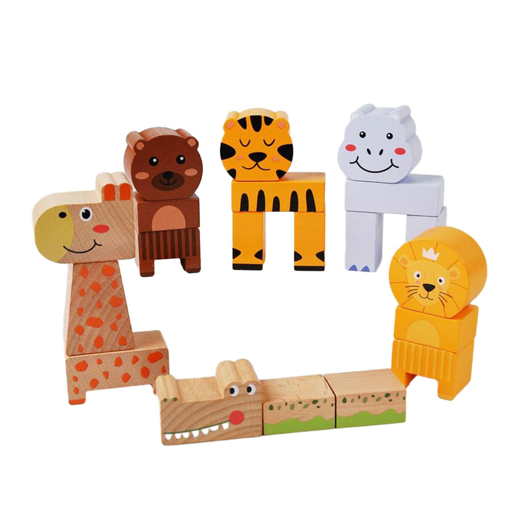 Maxbell Animal Stacking Building Blocks Cute Wooden Animals Stacking Blocks for Kids